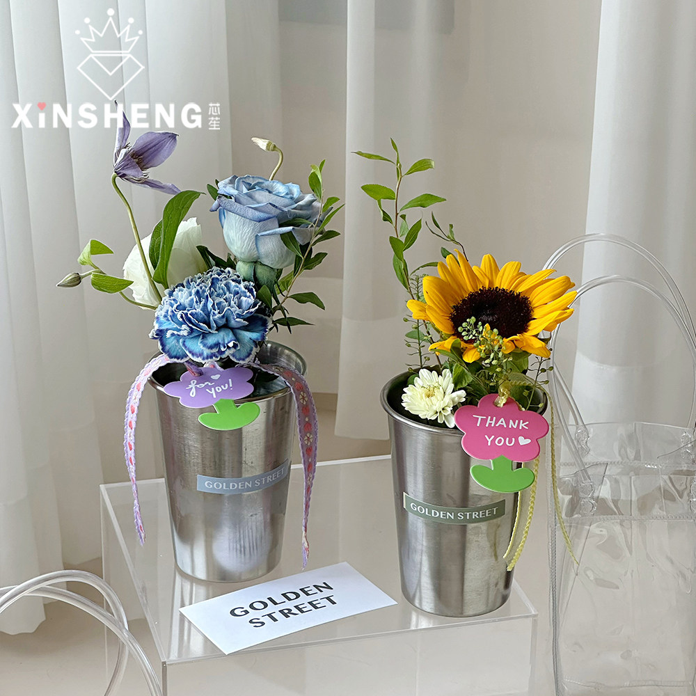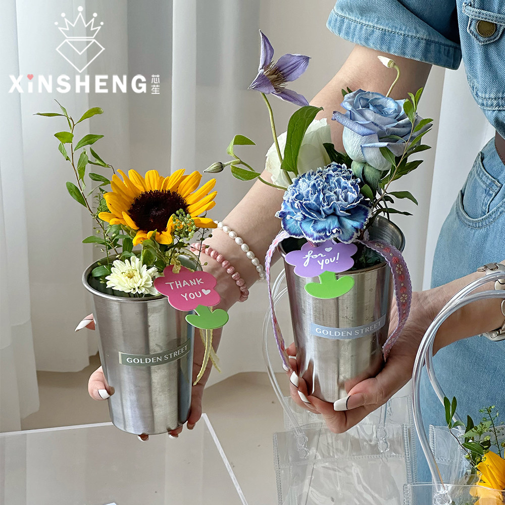 芯苼 Творческий ручной кубок цветов цветы художественные материалы для упаковки маленький букет Diy из нержавеющей стали ваза подарок цветочный ведро
