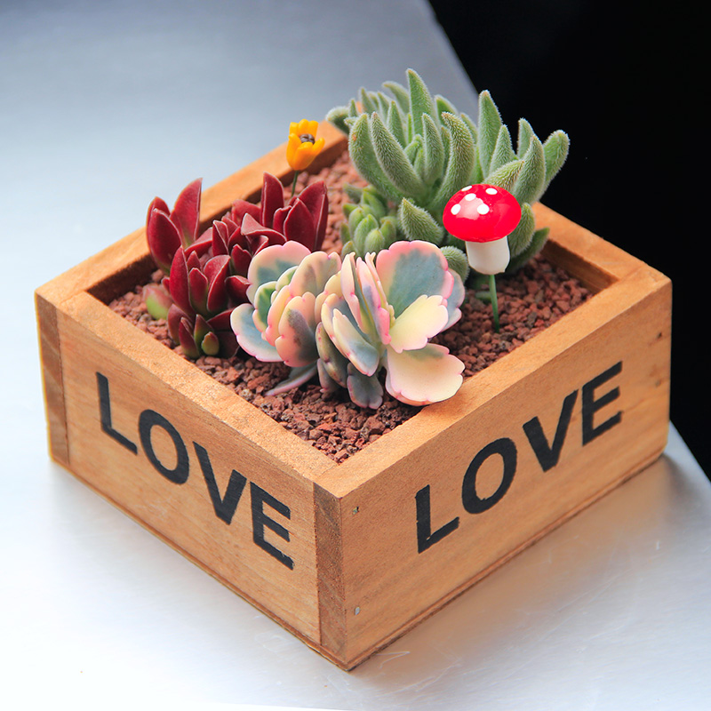 菜多美 Ретро деревянный цветочный горшок, микро пейзаж, прямоугольная деревянная коробка, стиль
