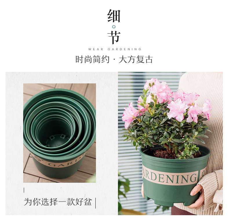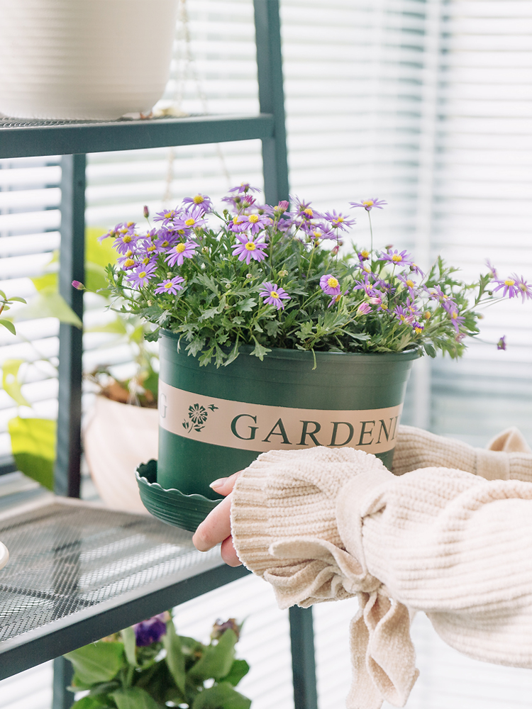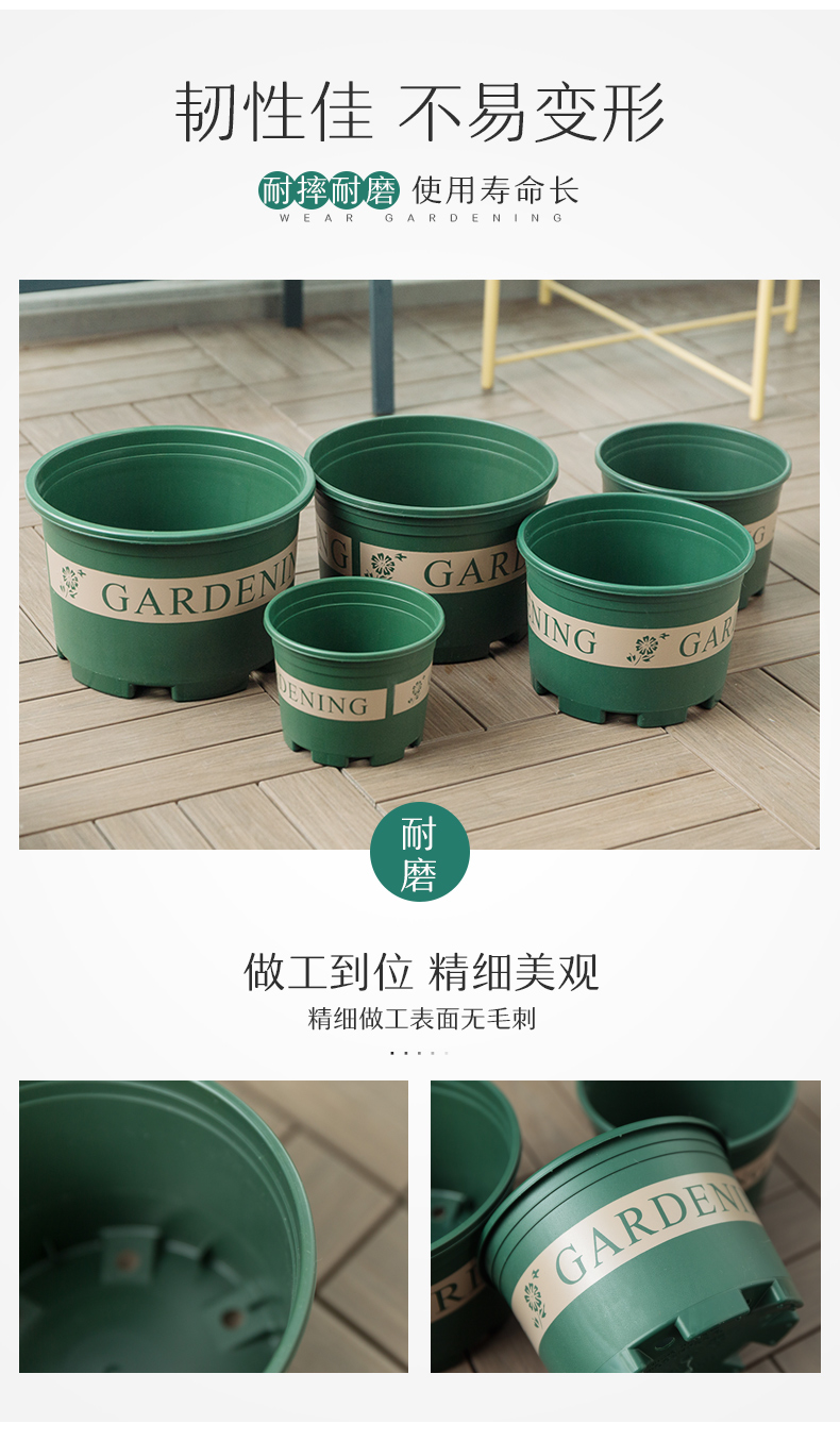 Специальное предложение с толстым цветочным кастрюлем 1 2 3 5 Пластиковый цветочный горшок с круглым лотком с минималистским зеленым горшком Luolun