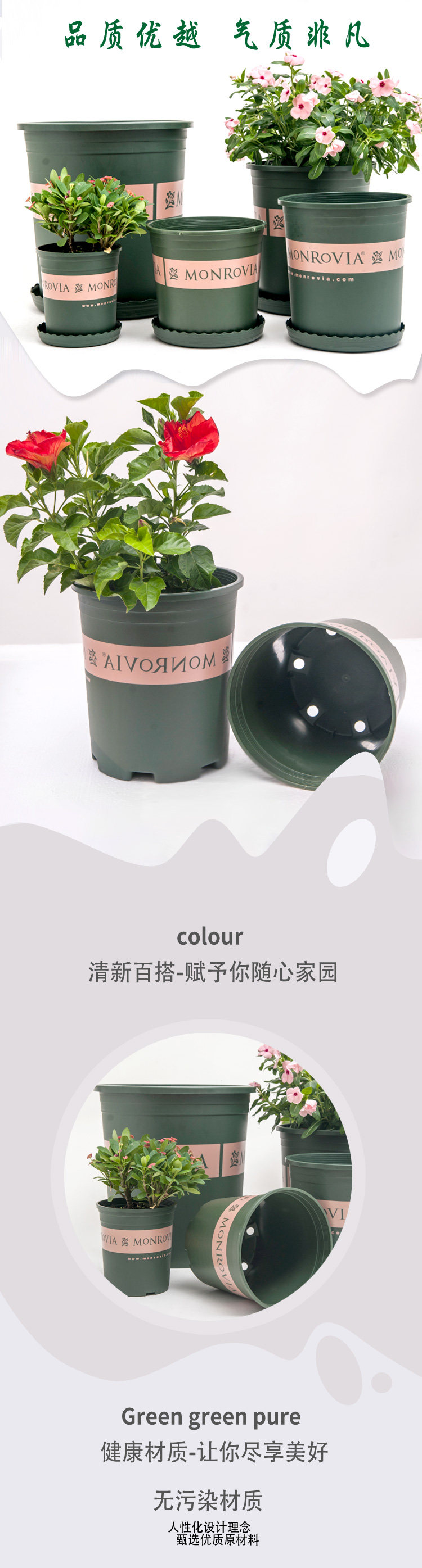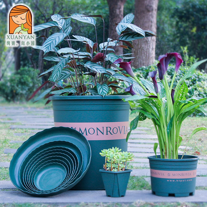 Цветочный горшок с высоким уровнем ствола крупный короткий жир, контролируемый корневым горшками, пластиковые, зеленые растения зеленые укроп чистый склад. Сеть красные глобальные галлоны