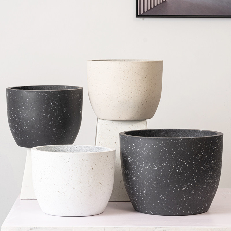 Магазин шестилетней давности, шесть размеров декоративных массивных круглых цветочных горшков из цемента, бонсай на балконе, дышащая гостиная от пола до потолка, большие белые, черные, огромные мраморные горшки.