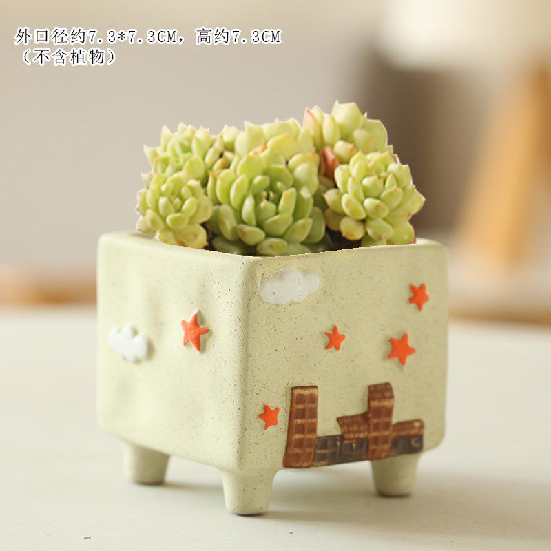 Мультяшный креативный керамический окрашенный милый дышащий цветочный горшок, ручная роспись