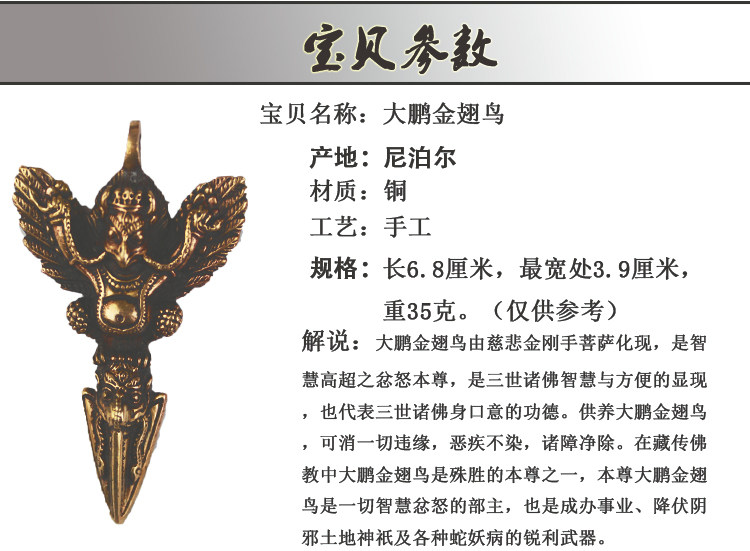 Непал ручной работы чистый бронзовый Dapeng Golden Care Care King Kong Persilet Permonized Carthage Penden