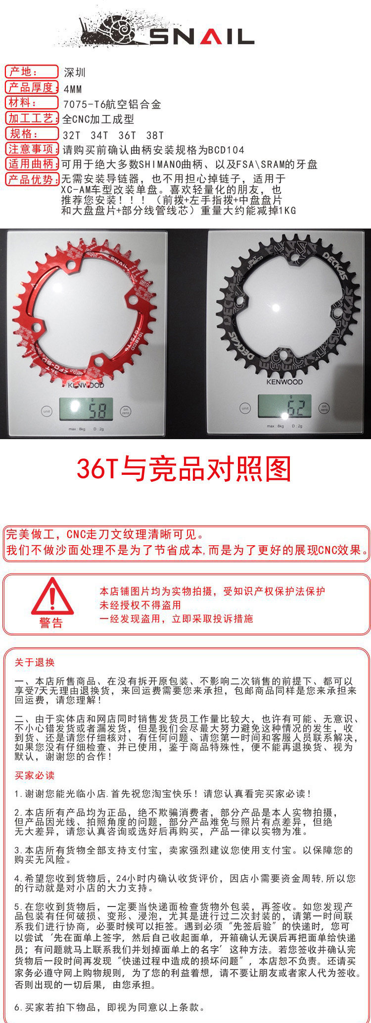 Мы используем густой и тонкий зубной конструкцию, чтобы получить вероятность уменьшения капель цепи.7075 Материал алюминиевого сплава с хорошей усталостью и обрабатываемостьюВСЕ CNCОбработкаЭта тарелка может использоваться для большинства стоматологических лоток Shimano, а также для некоторых стоматологических лотков FSA и SRAM. Пожалуйста, убедитесь, что стоматологические характеристики представляют собой BCD104 (M390 зубной пластины/M4000 зубной пластины/зубной лотки M590).Не нужно устанавливать цепь или беспокоиться о цепи, подходящей для модифицированного отдельного диска моделей XC-AM