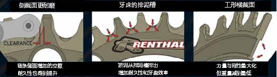 Внутренняя цепная пластина находится в контакте с широким перекрестным разрешением пластины до зубов, что вызывает ношение зубов.В настоящее время эффективность зуба будет снижена, потому что цепь не может быть точно зафиксирована на зубном зубе.Чтобы уменьшить износ и увеличить срок службы цепи, метод резки участка зуба пластин является более особенным, что может сделать область износа зубов диска более равномерной.Поверхность полных зубов изготавливается с помощью алюминиевого сплава 7075 T6, а затем через анодное отверждение, долговечность полностью улучшена.Мы сравнили Renthal 1XR с доминирующими зубами на рынке, и результат Renthal 1XR был лучше.