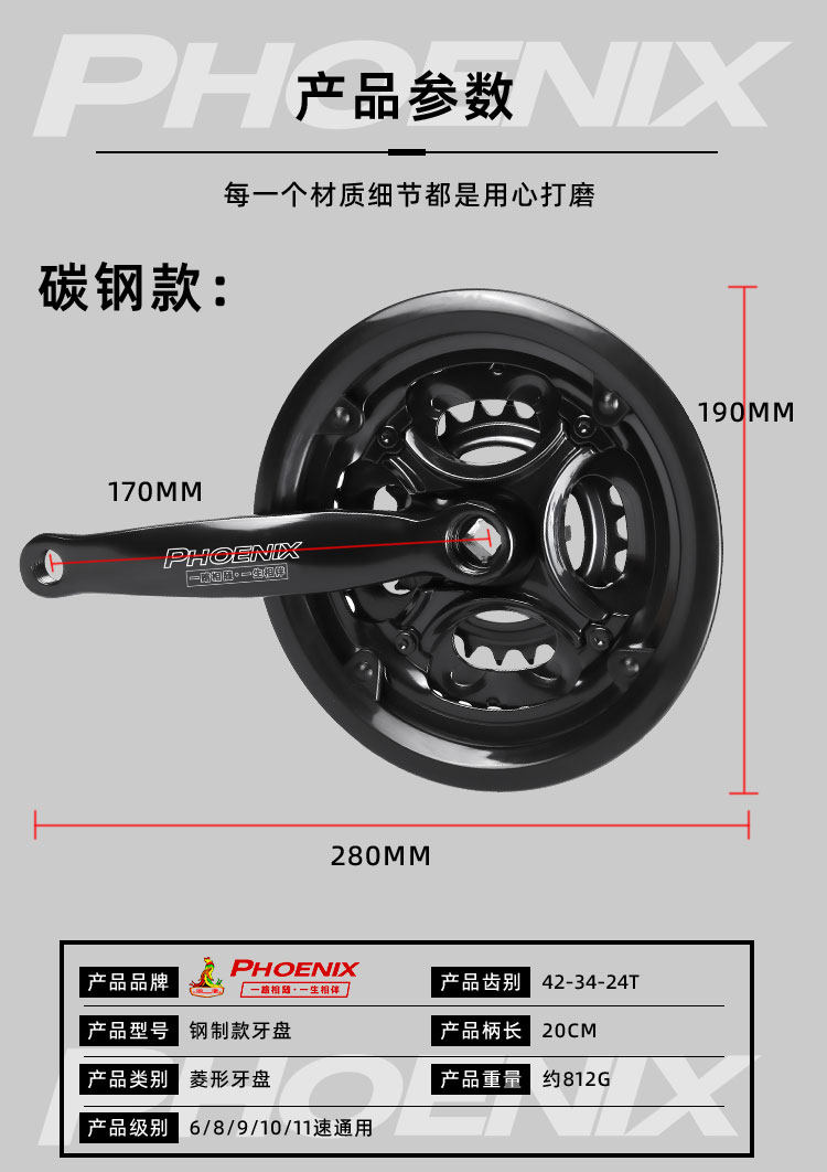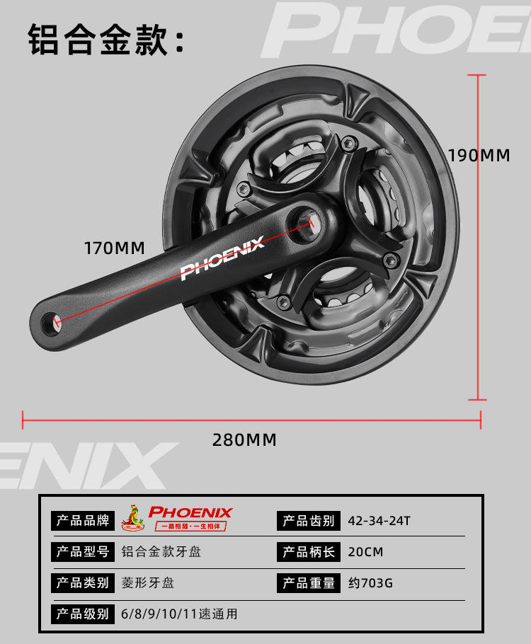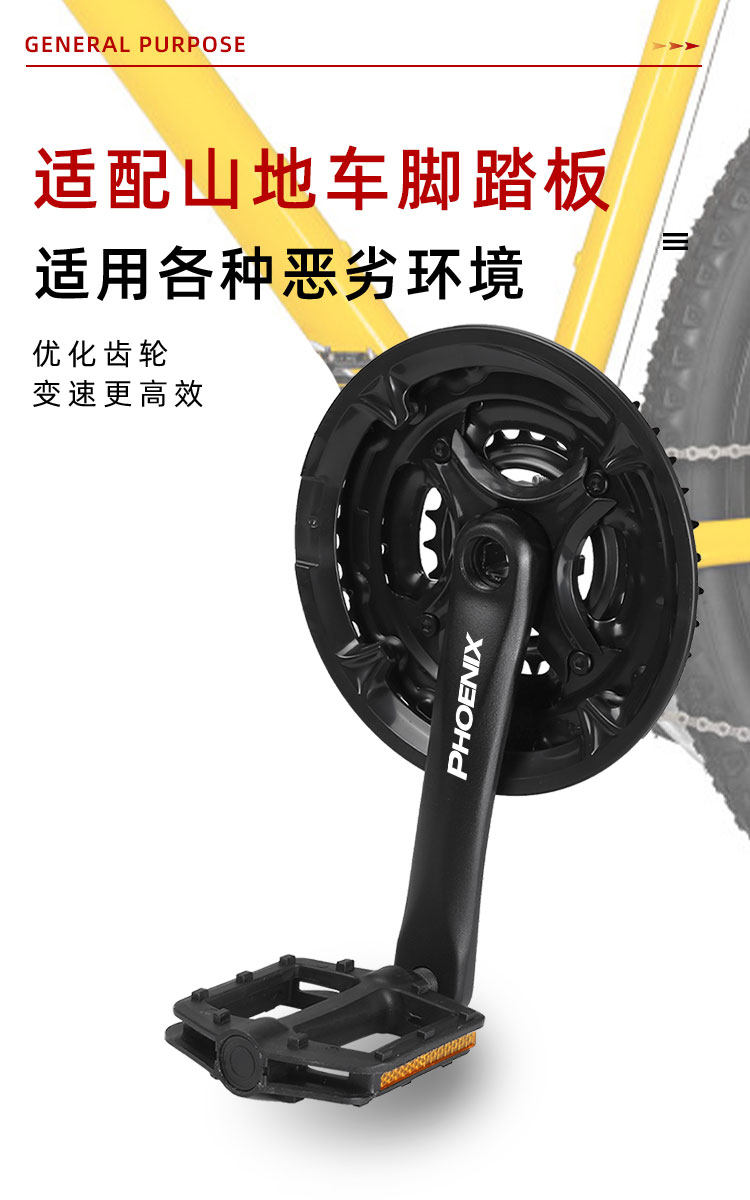 Феникс, горный велосипед, велосипедная система шатунов с педалями, металлическая рукоятка с аксессуарами, алюминиевый сплав