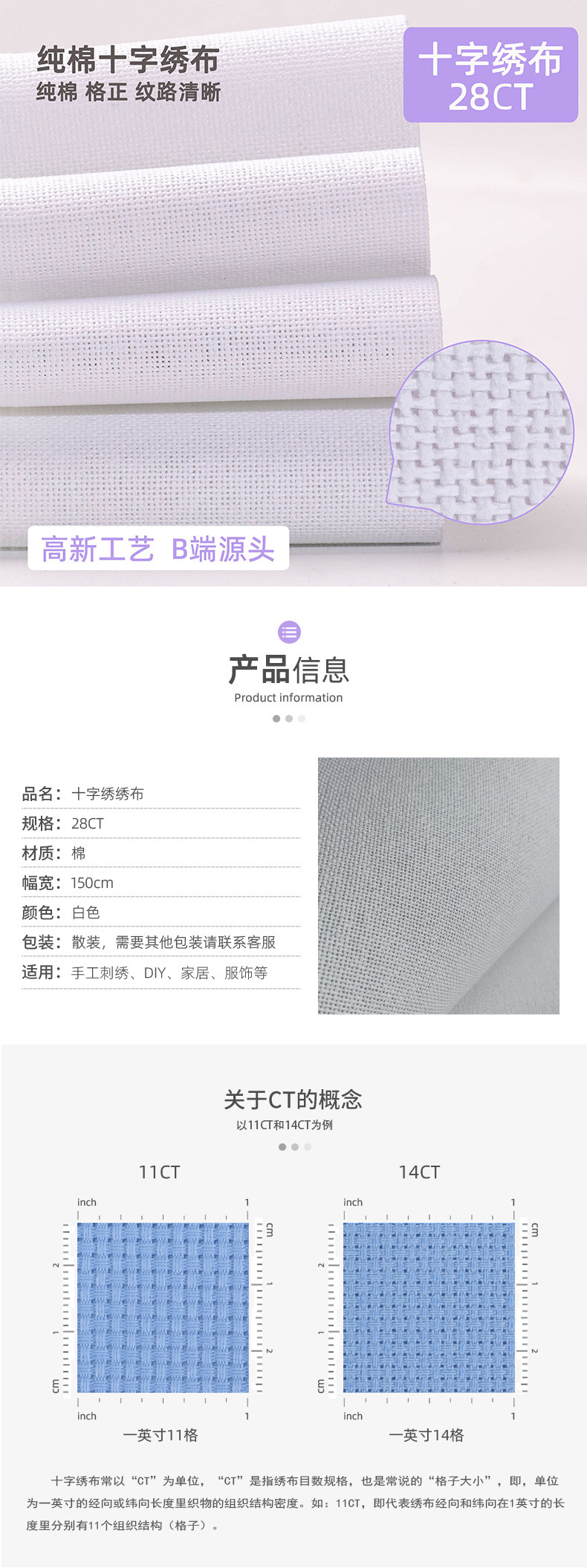Высококачественный чистый хлопковой вышивание с высокой одеждой для вышивки 28ct Small Cross -Stitch Белая ширина шириной 1,5 метра шириной 1,5 метра