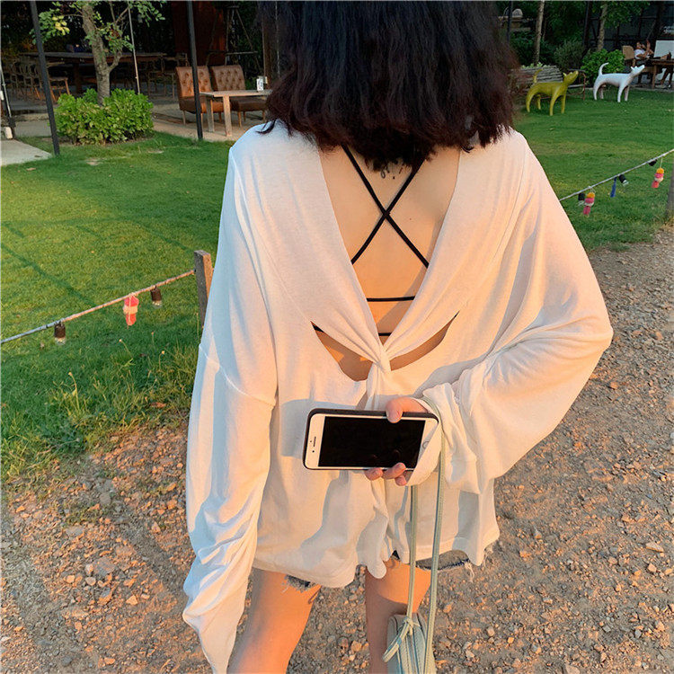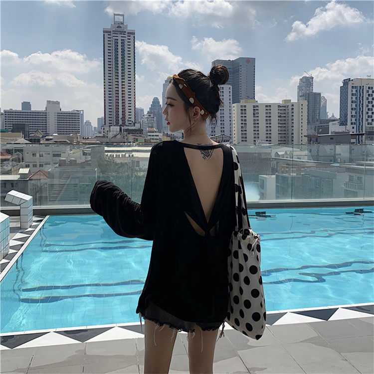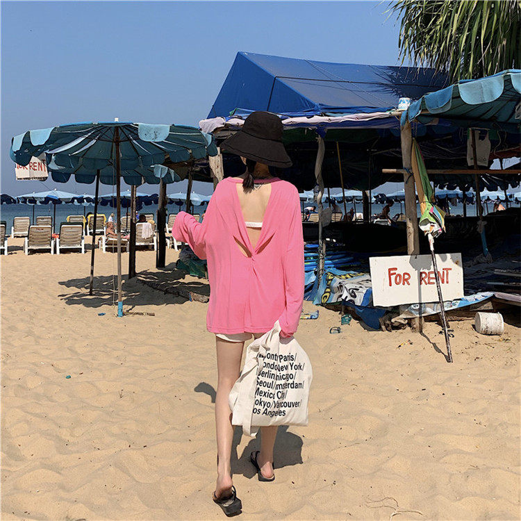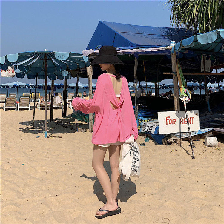 Брендовый тонкий купальник, пляжный лонгслив, красивая спина, защита от солнца