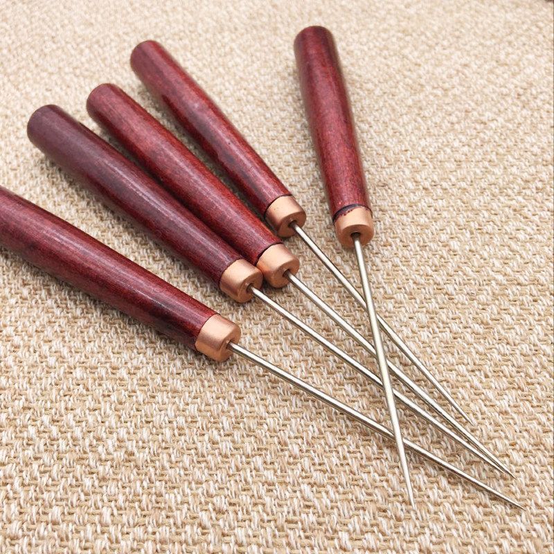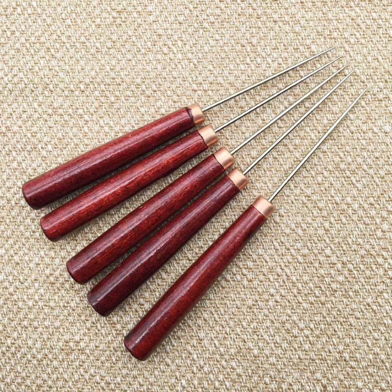 DIY Тысячи ручной ручной конъюнктивной иглы с твердой деревянной ручкой, буриль -буриль, игольчатая кожаная швейная инструмент Бесплатная доставка
