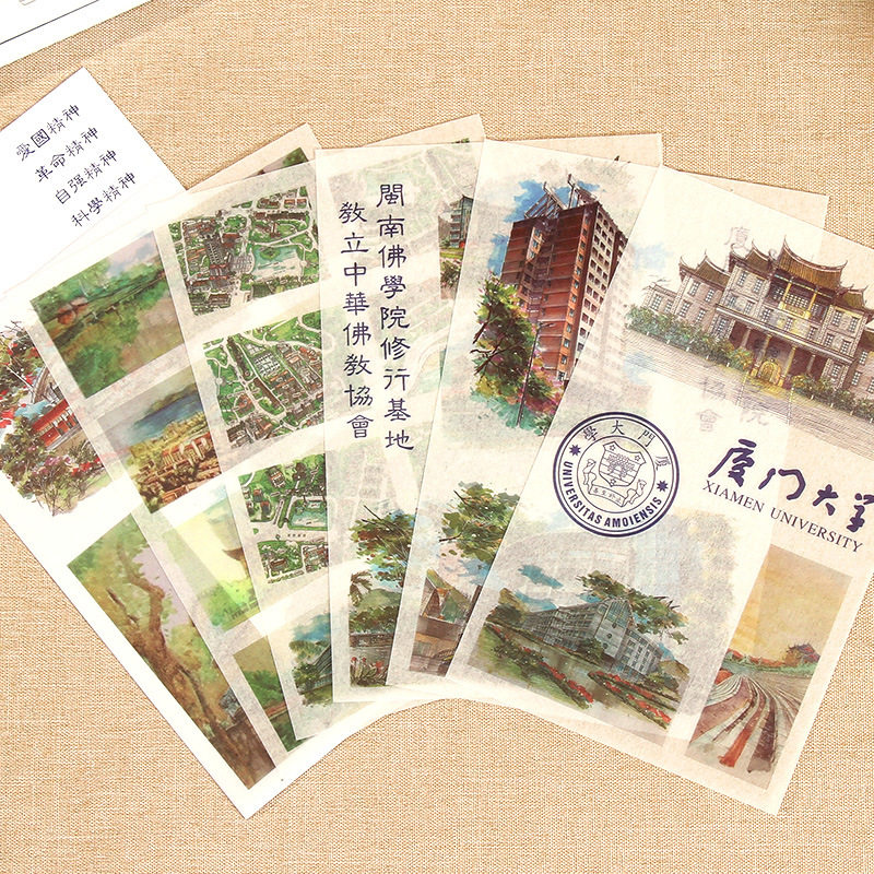 Творческий университетский колледж Мемориал туризм и бумажная бумага Справочник по пасты наклейка Xiamen Peking University Tsinghua Пейзаж