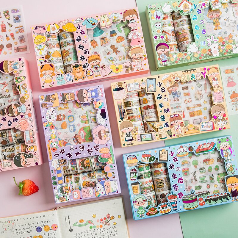Наклейка, бумажная лента, подарочная коробка, милый свежий комплект для школьников, планировщик, DIY