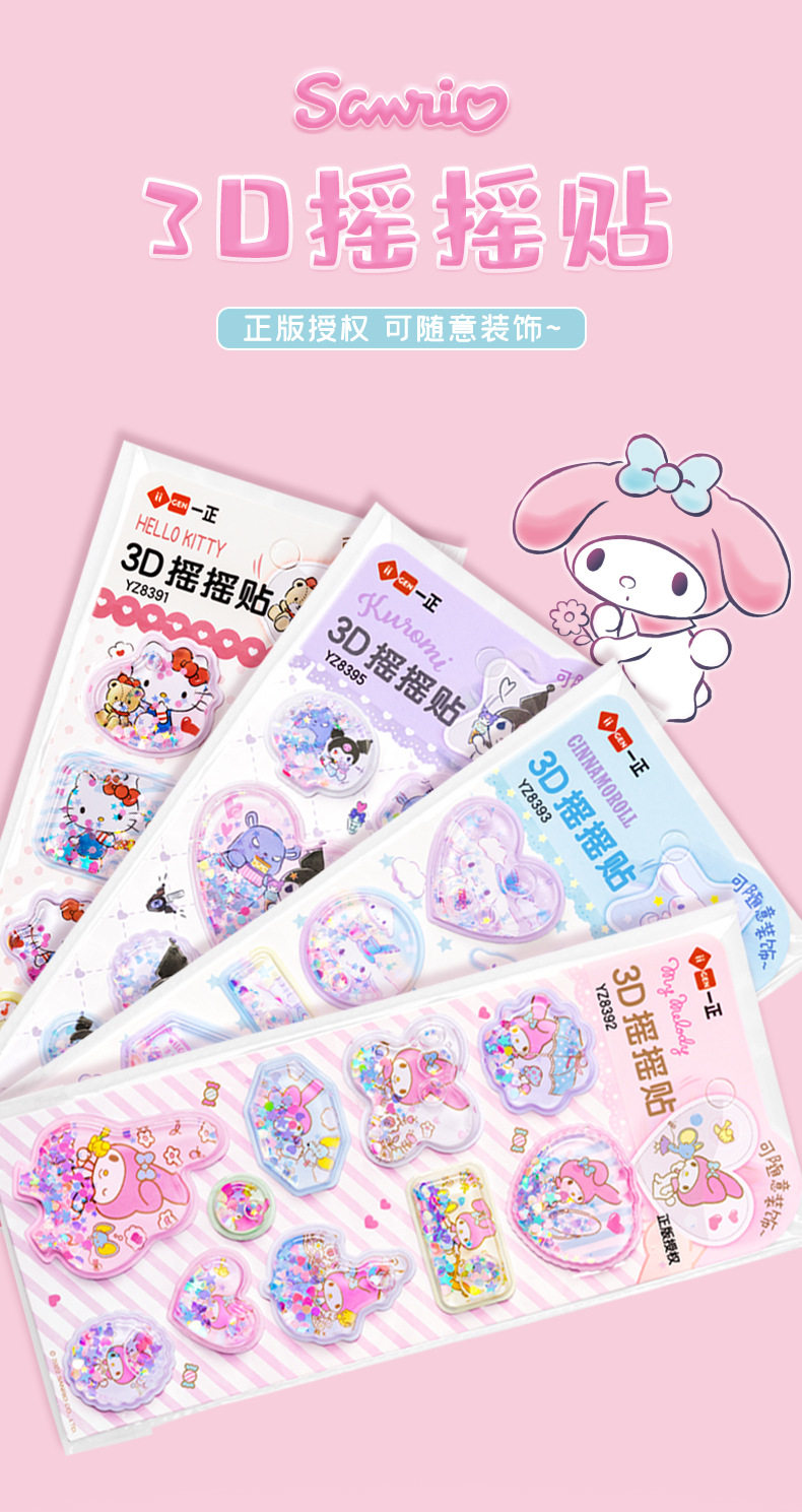 Sanrio, трехмерная милая качалка, детская мультяшная наклейка для детского сада, блестящая награда, в 3d формате, планировщик