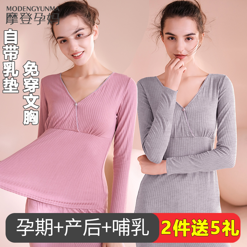 Послеродовая пижама для кормящих грудью для выхода на улицу, летнее приятное телу осеннее тонкое термобелье