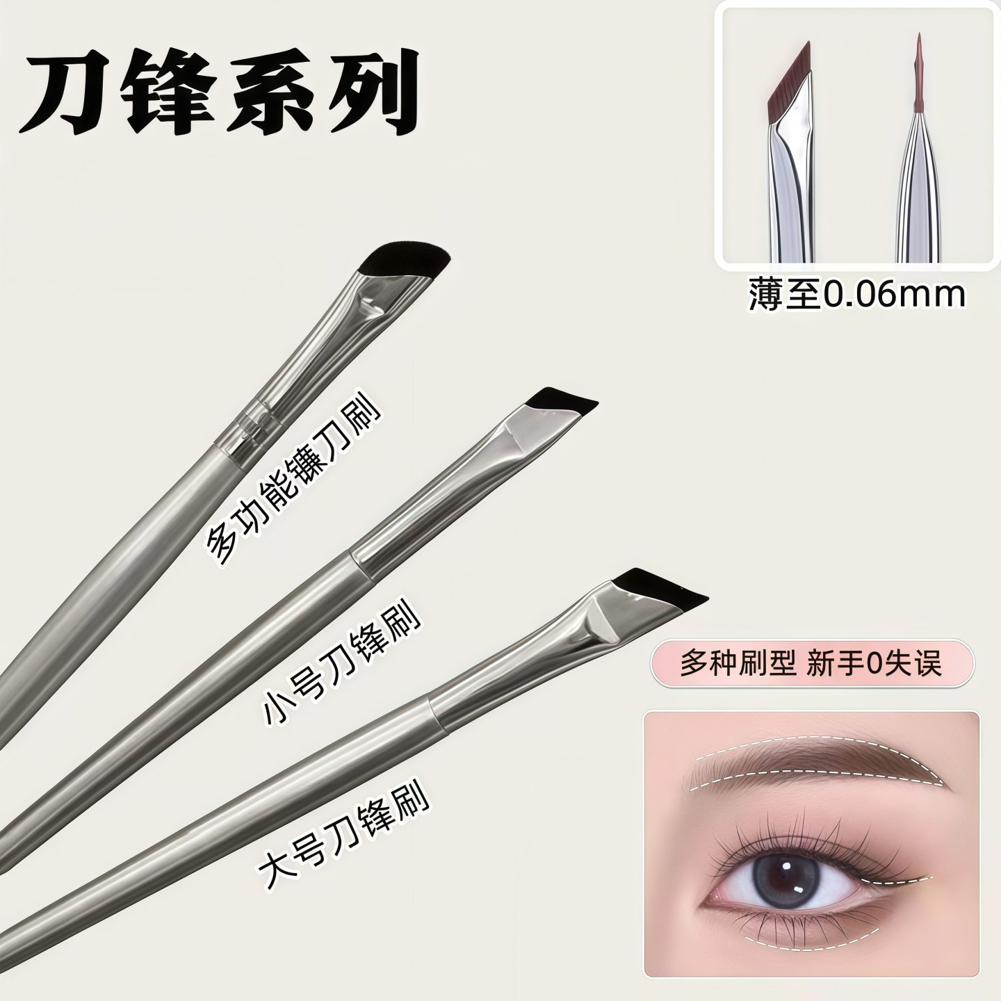 Серповидная кисть для подводки глаз, ультратонкая плоская головка, ультратонкая кисть для подводки глаз, скошенная кисть для бровей, тени для носа Silkworm, набор из трех предметов