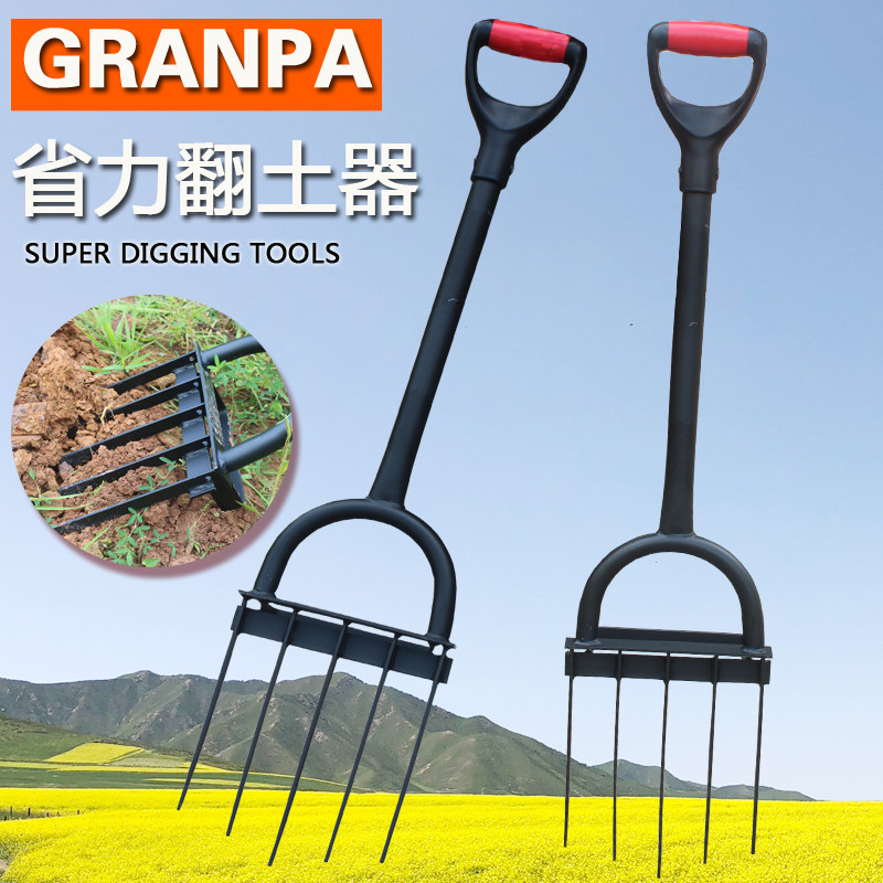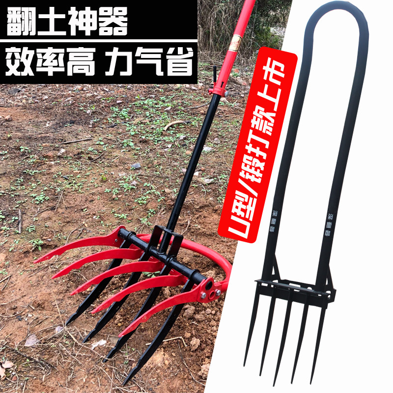 Оверните Связующую Сосновую Землю Использованные Инструменты увлечения для открытия земли, стальной вилки мотыга, почвенной турбины, сельскохозяйственной свободной почвы