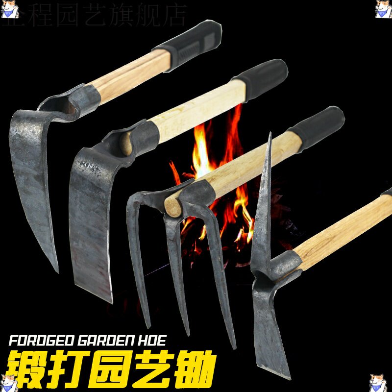 Маленькие пользователи мотыга, сажающие сельскохозяйственные инструменты, чтобы перевернуть землю, чтобы открыть землю, копая сельскохозяйственную посадку овощных овощей, копая бамбуковые побеги и сушеные бамбуковые побеги и предатели.