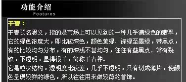 Как следует из названия, Ganqing относится к своего рода почти зеленому изумруду, который можно увидеть на рынке. Его зеленая концентрация большая, то есть темный цвет, темно -зеленый, темно -зеленый до темно -зеленых, черные пятна, а некоторые равномерно Распределено равномерно. Некоторые глубины даже не однородны, часто немного черные пятна.Часто есть трещины, непрозрачные и очень сухие, называемые сухими зелеными видами.