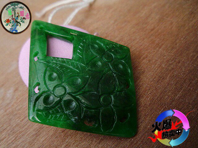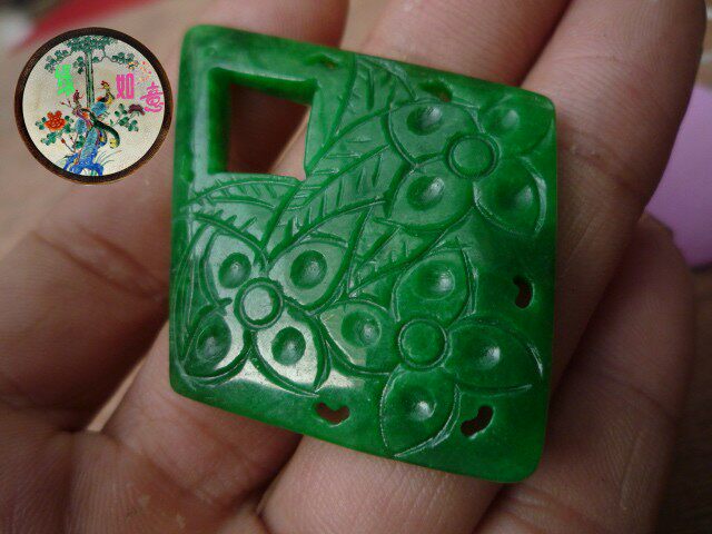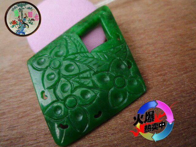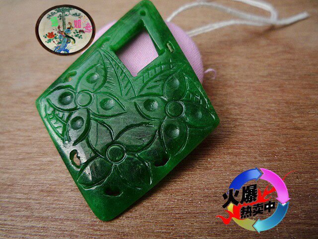 Изумрудная большая двусторонная подвеска из Мьянмы из нефрита ручной работы