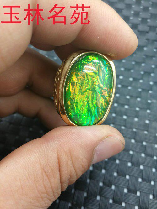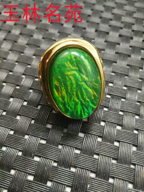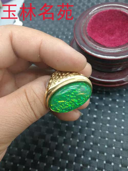Юлин Миньюань Цин Дай Шри -Ланка Золотой драгоценный камень Старый драгоценный камень изменит зеленое кольцо мужчин