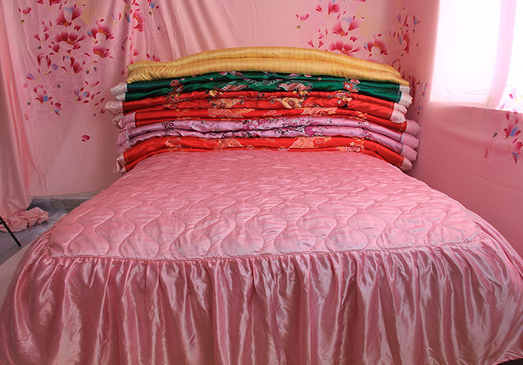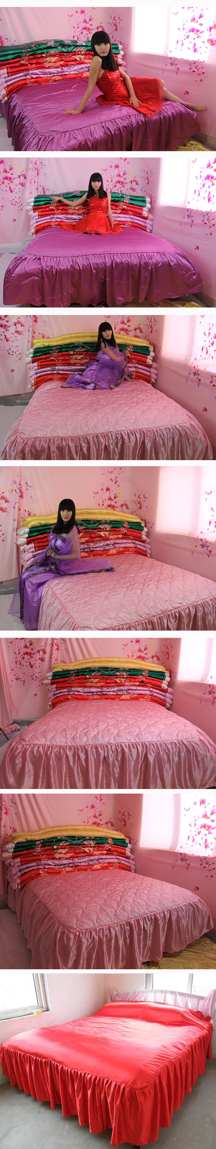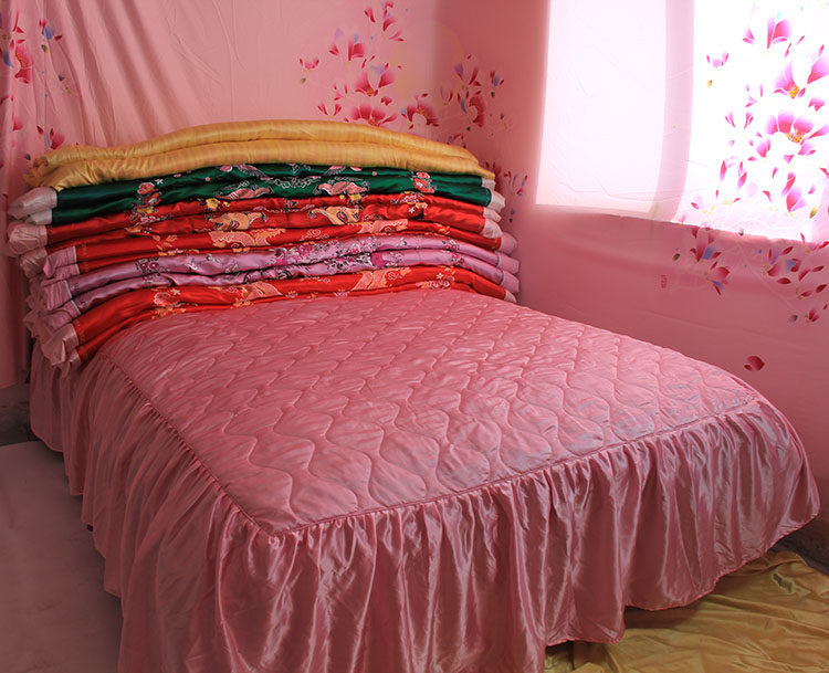 Крышка кровати является эластичной, также называемой высоким шелковым шелком.Очень скользкий и мягкий.Идеально и удобно.Очень праздничный.Брак или как праздник особенно подходит.