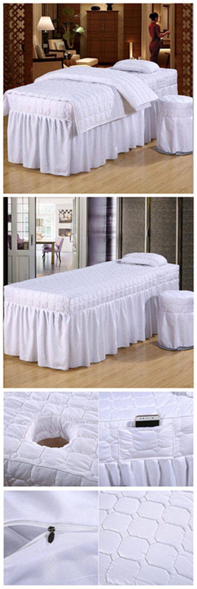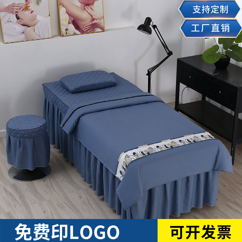 Косметическое покрывало, косметический комплект, розово-фиолетовый сиреневый массажер, стеганое одеяло, пододеяльник, простыня, 4 предмета, для салонов красоты