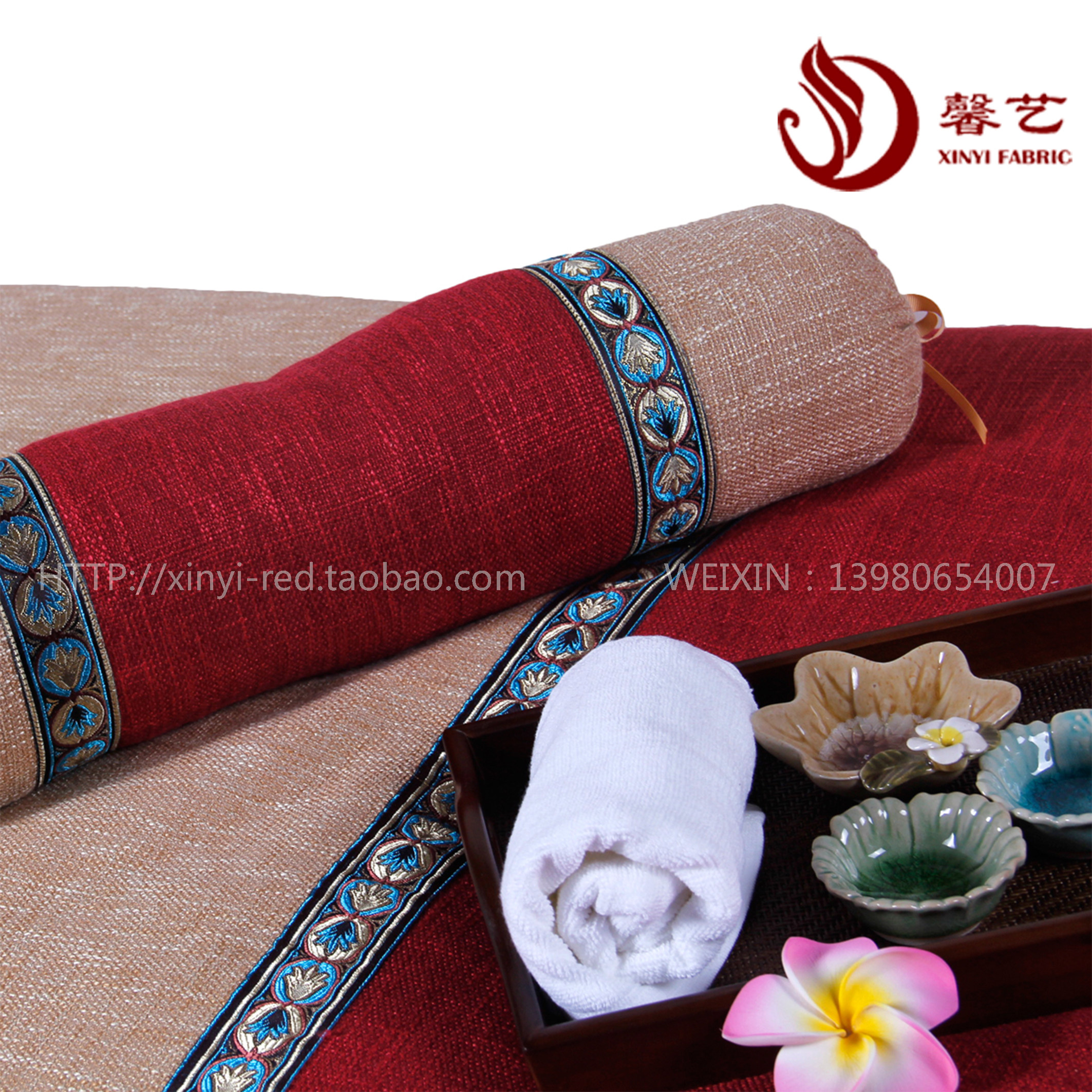 Косметическое красное покрывало, косметический массажер, комплект, китайский стиль, из хлопка и льна, 4 предмета