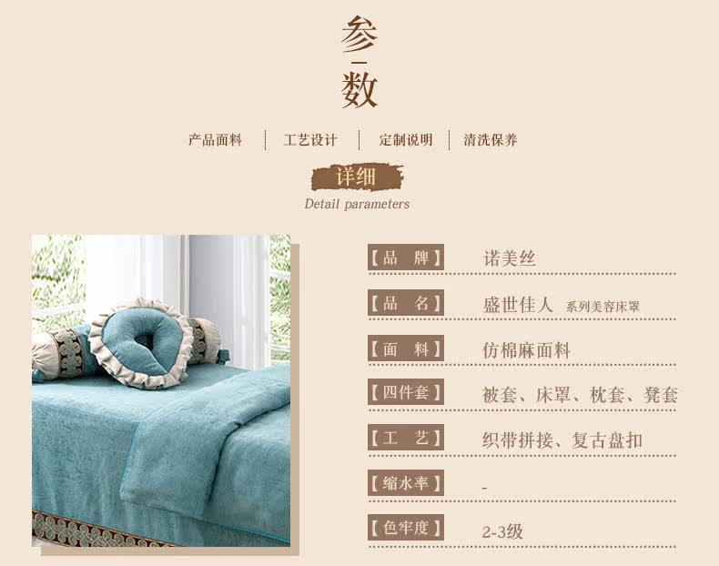 诺美丝 Косметическое покрывало, комплект, косметический индивидуальный массажер, 4 предмета, из хлопка и льна, для салонов красоты