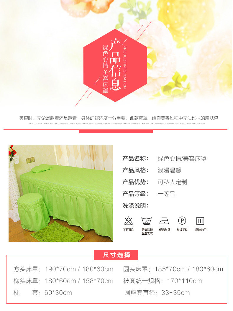 Косметическое покрывало, косметический комплект, зеленый массажер, 4 предмета, для салонов красоты