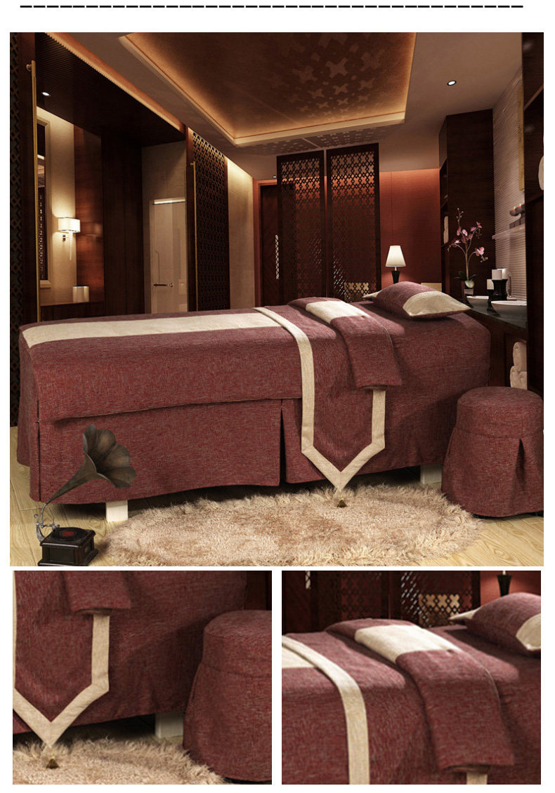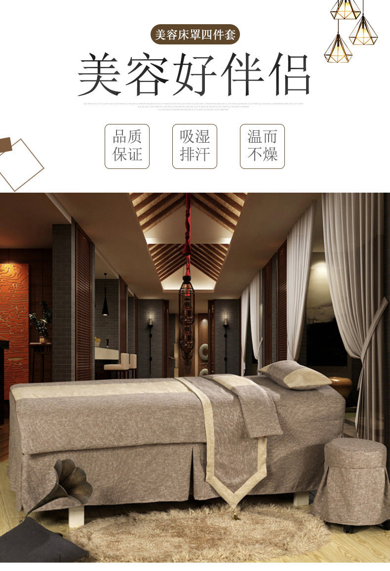 美丽坊 Косметическое покрывало, комплект, индивидуальный массажер для мытья головы, 4 предмета, легкий роскошный стиль, из хлопка и льна