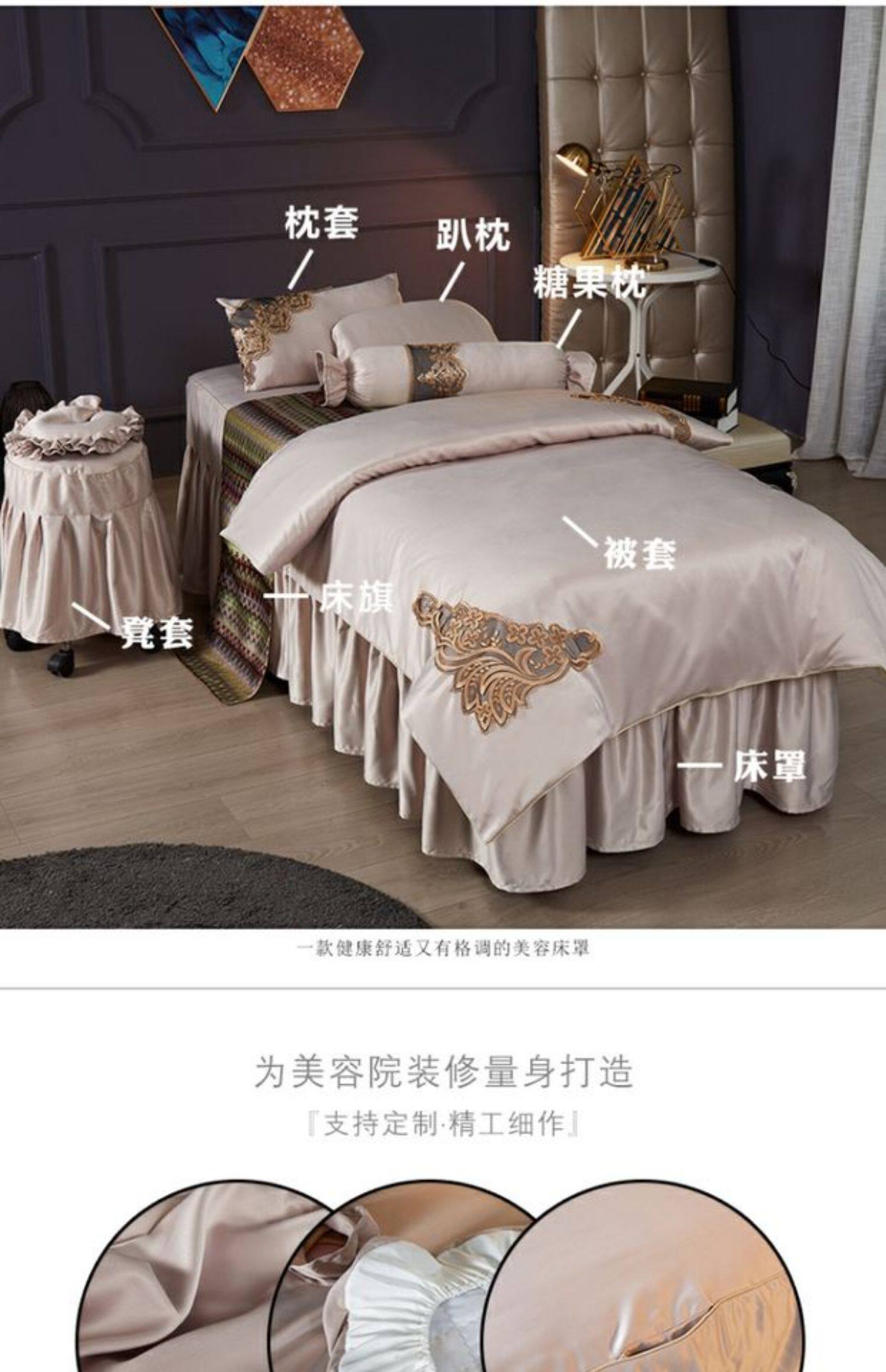 Покрывало, комплект, шелковая замшевая летняя ткань, 4 предмета, для салонов красоты, европейский стиль