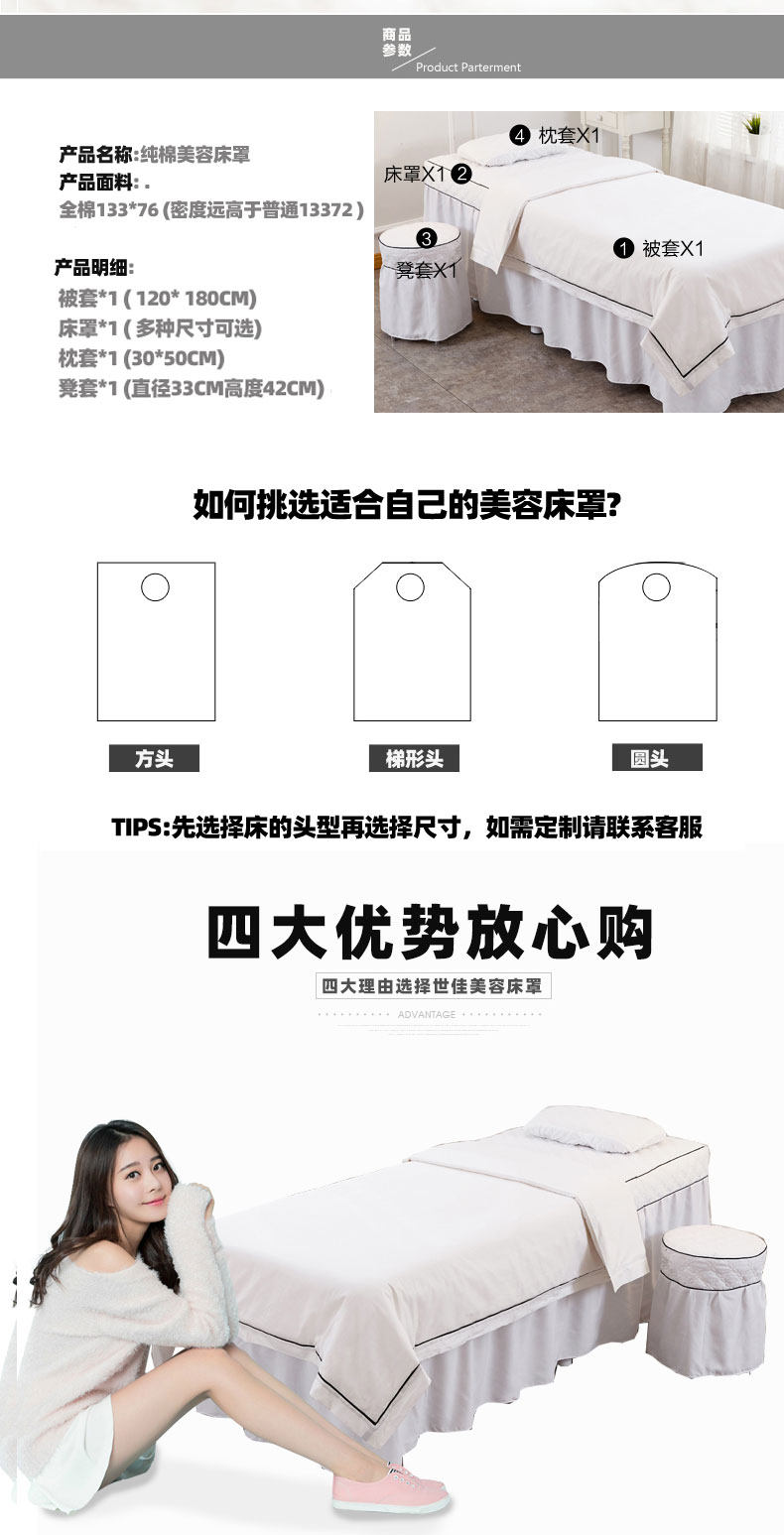 Косметическое покрывало, комплект, хлопковый массажер для мытья головы, 4 предмета, европейский стиль, простой и элегантный дизайн, с печатью вашего логотипа