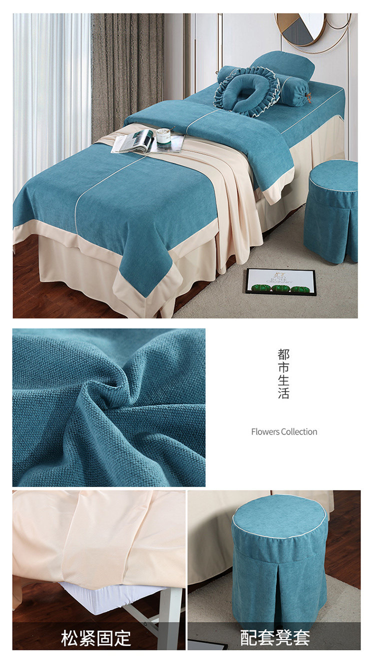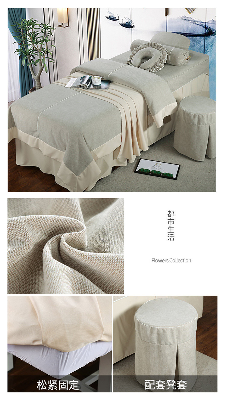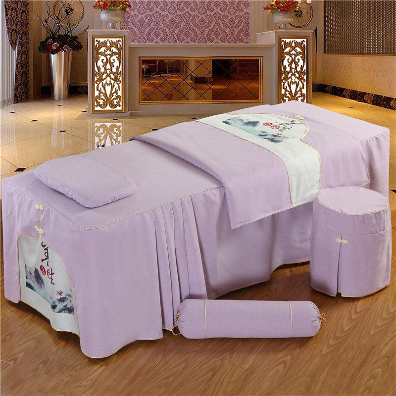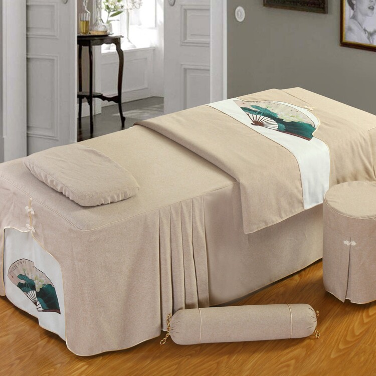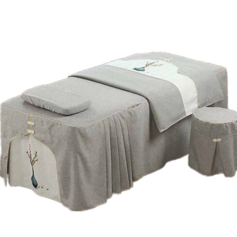 Высококлассное косметическое покрывало, хлопковый комплект, косметический индивидуальный массажер, 4 предмета, из хлопка и льна, для салонов красоты