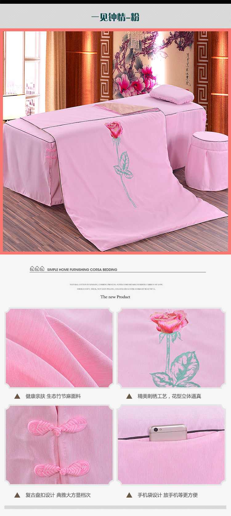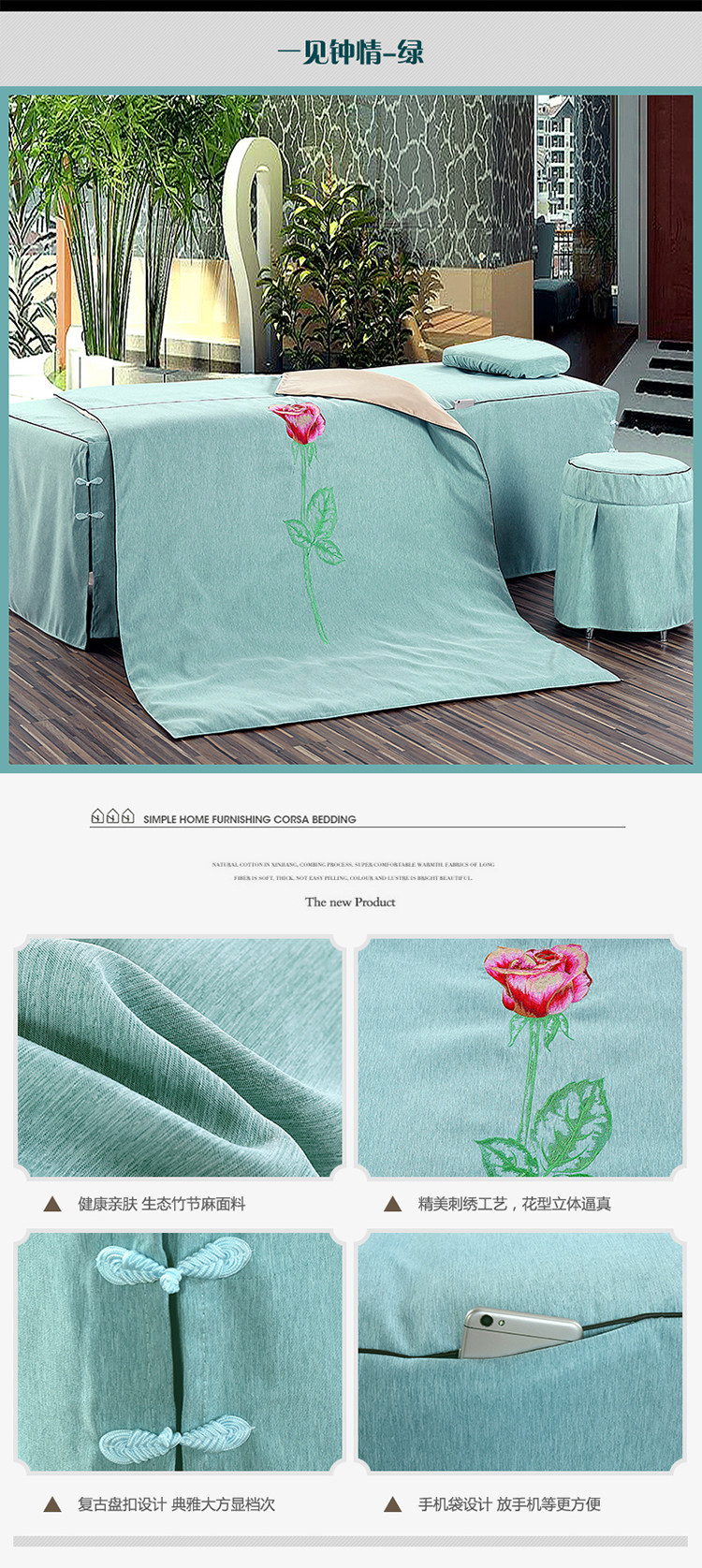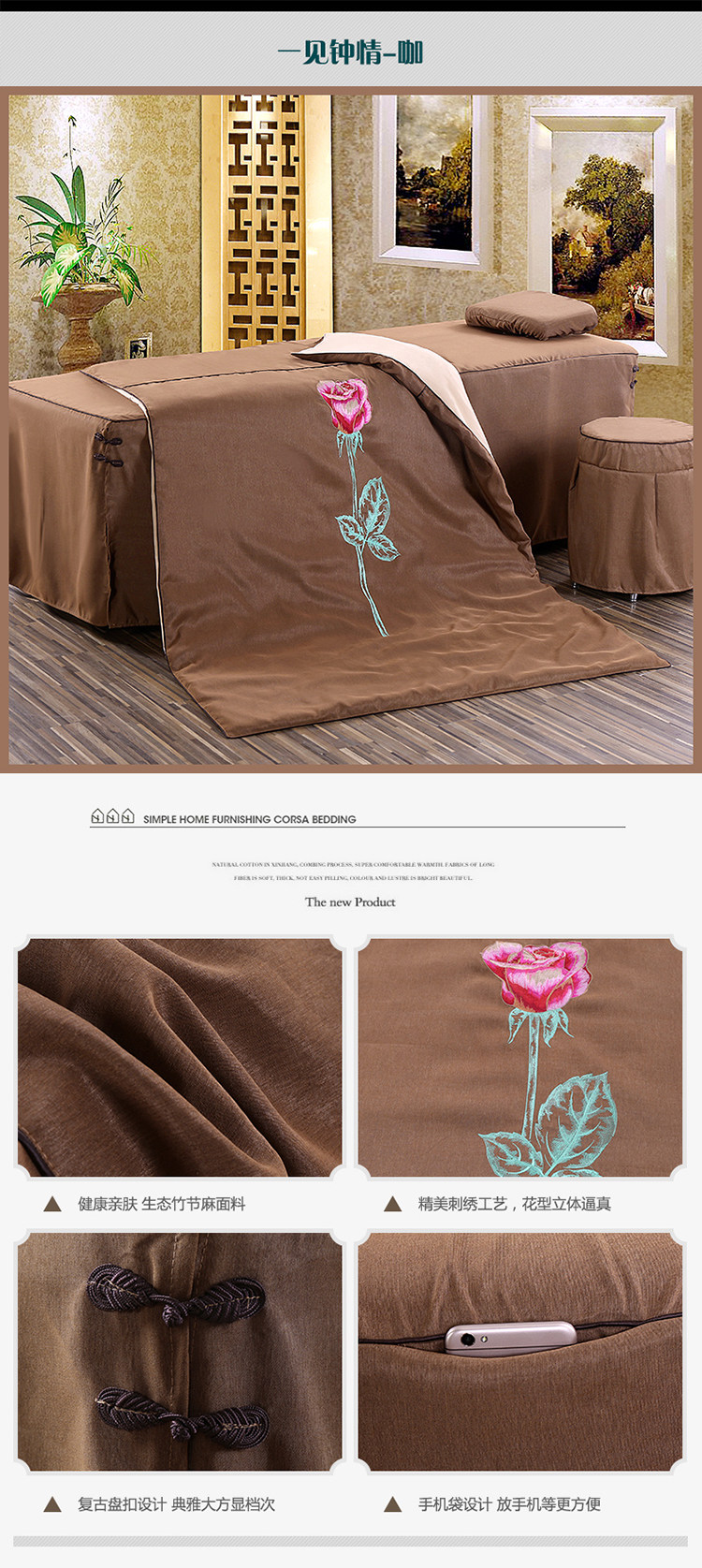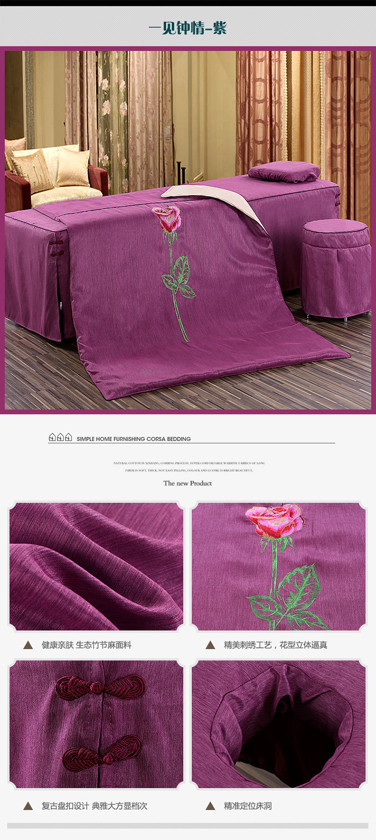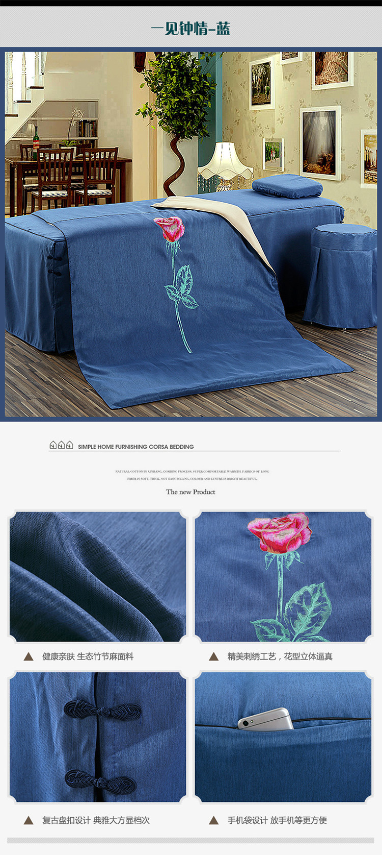 Косметическое покрывало, хлопковый высококлассный комплект, косметический массажер, 4 предмета, из хлопка и льна, европейский стиль, для салонов красоты, простой и элегантный дизайн