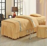 Комплект из четырех предметов для косметической кровати включает в себя покрывало, пододеяльник, наволочку и чехол на табурет.
