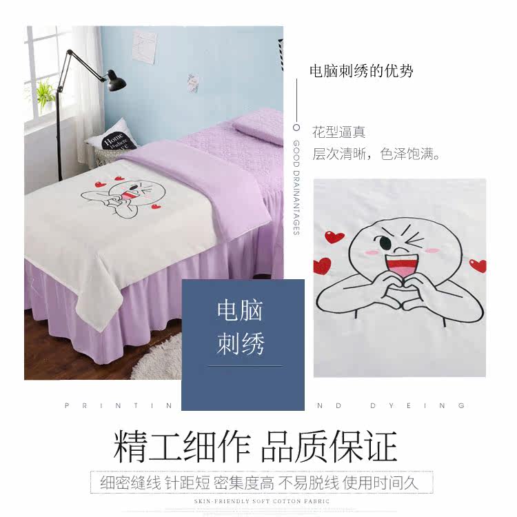 Косметический массажер, пододеяльник, покрывало, комплект, с вышивкой, 4 предмета