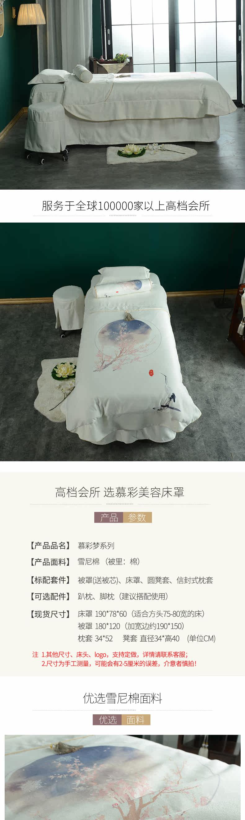 慕彩 Косметическое покрывало, высококлассный комплект, хлопковое одеяло, универсальный индивидуальный массажер, 4 предмета, для салонов красоты