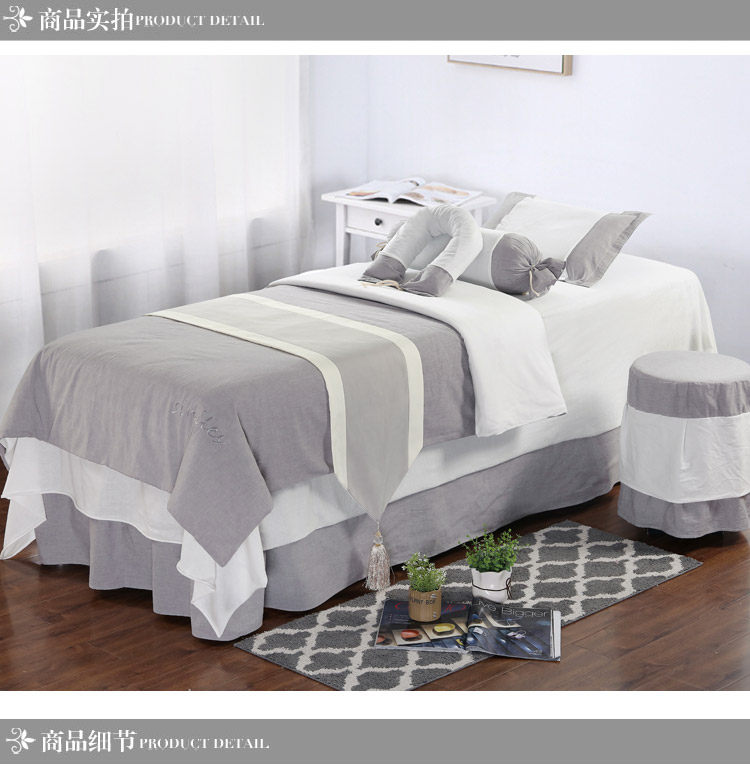 Покрывало, высококлассный хлопковый комплект, 4 предмета, из хлопка и льна, простой и элегантный дизайн, для салонов красоты