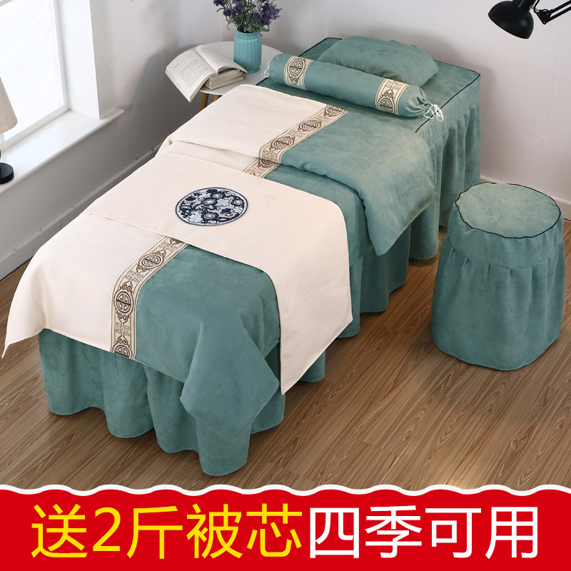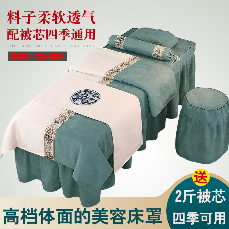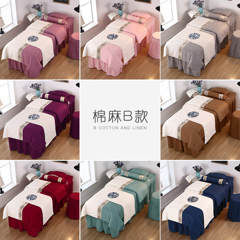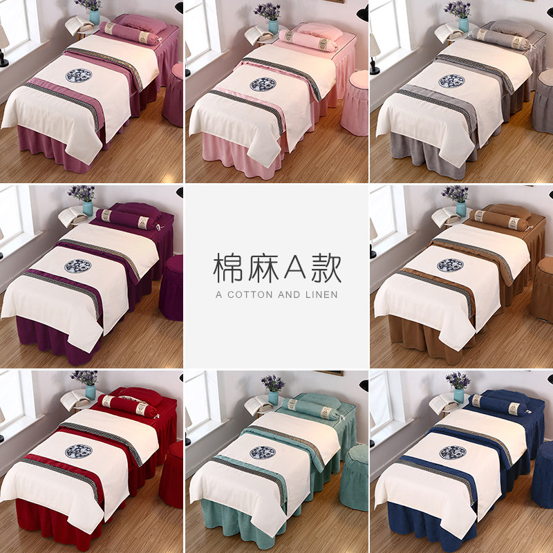 Универсальное косметическое покрывало, высококлассный комплект, косметический массажер, из хлопка и льна, 4 предмета, простой и элегантный дизайн, скандинавский стиль, для салонов красоты