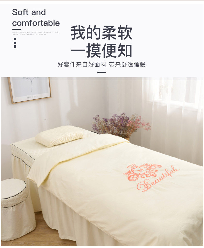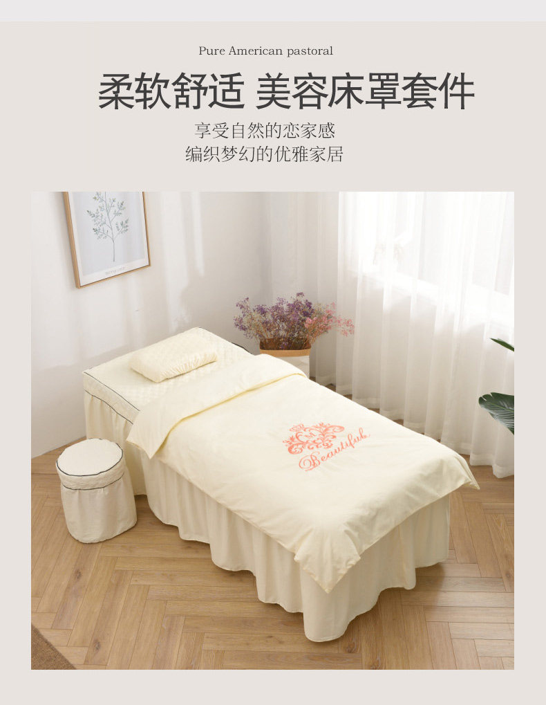 Косметическое покрывало, хлопковый комплект, массажер, для салонов красоты, 4 предмета, простой и элегантный дизайн, европейский стиль, с печатью вашего логотипа, делается под заказ