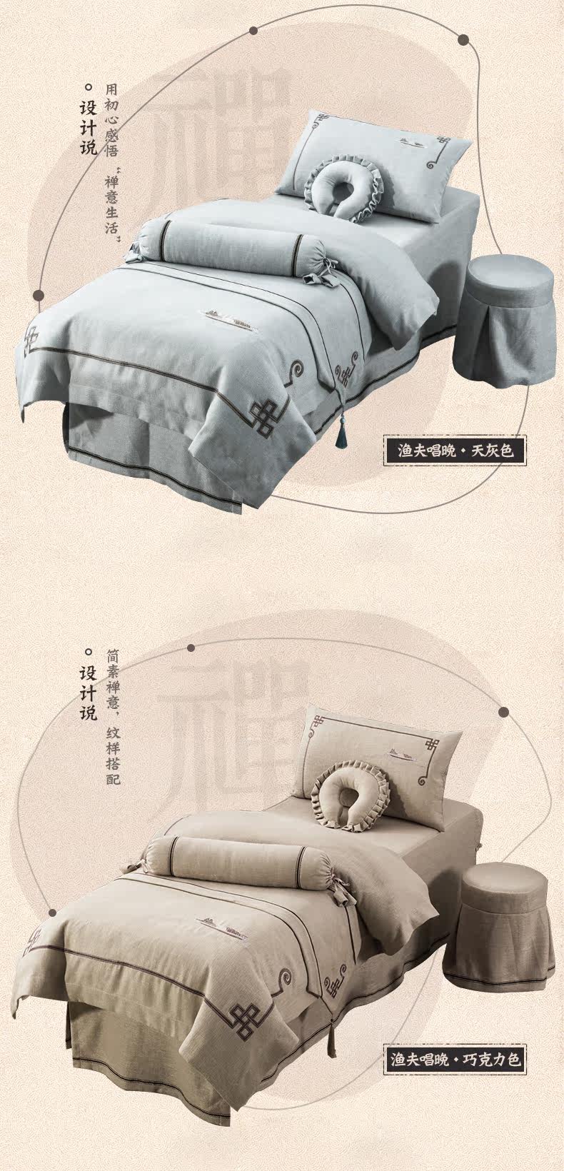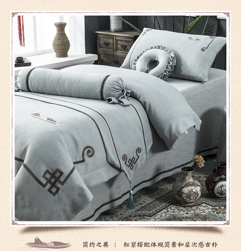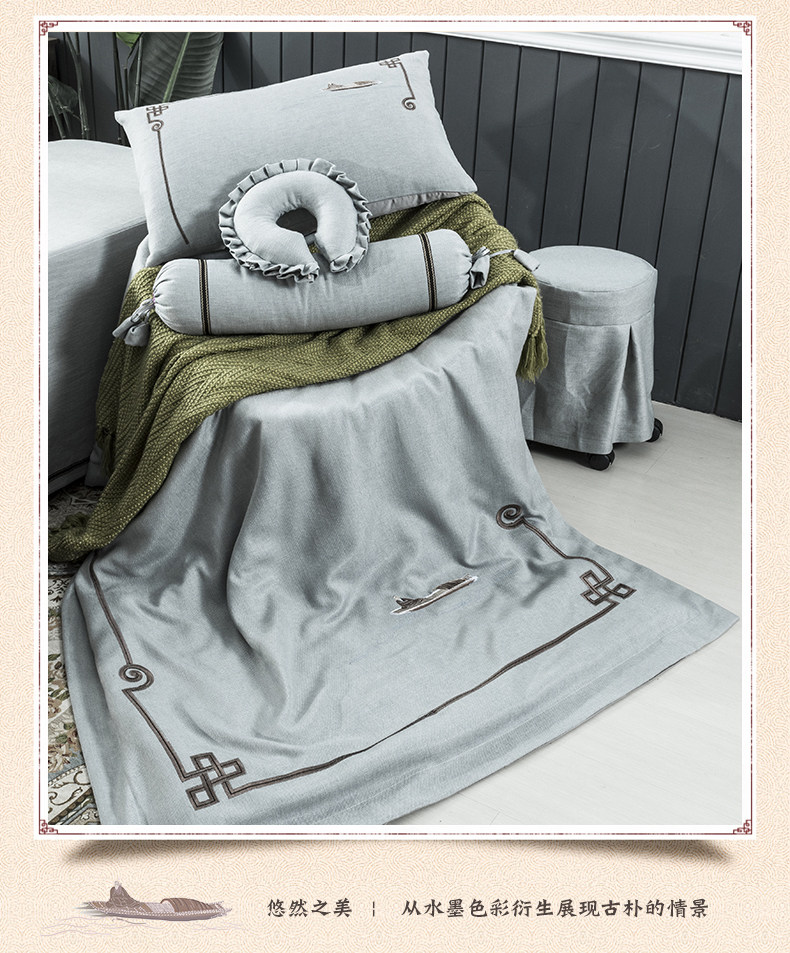 诺美丝 Косметическое покрывало, комплект, массажер, из хлопка и льна, 4 предмета, простой и элегантный дизайн, китайский стиль, новая коллекция, делается под заказ
