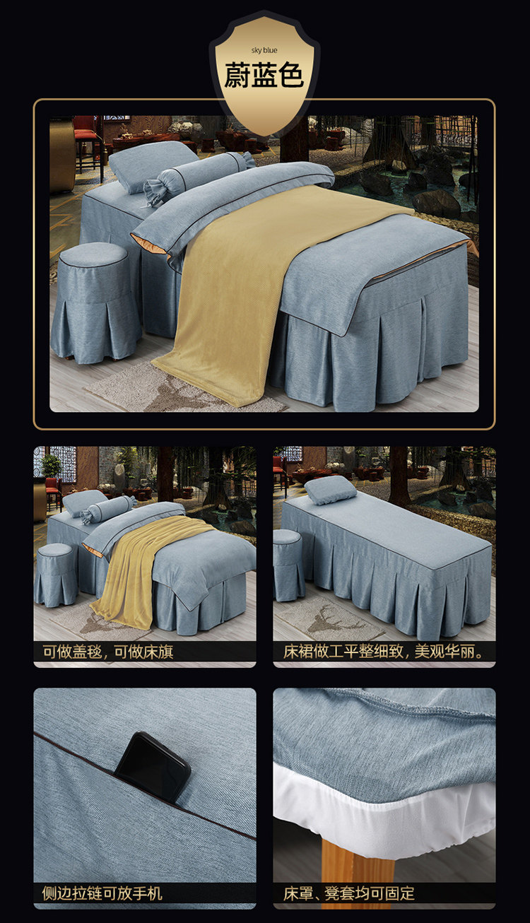 Хлопковое косметическое покрывало, комплект, косметический массажер, 4 предмета, скандинавский стиль, для салонов красоты, простой и элегантный дизайн, европейский стиль, делается под заказ, с печатью вашего логотипа