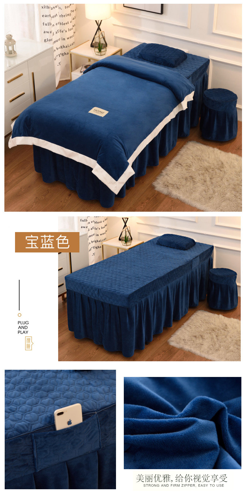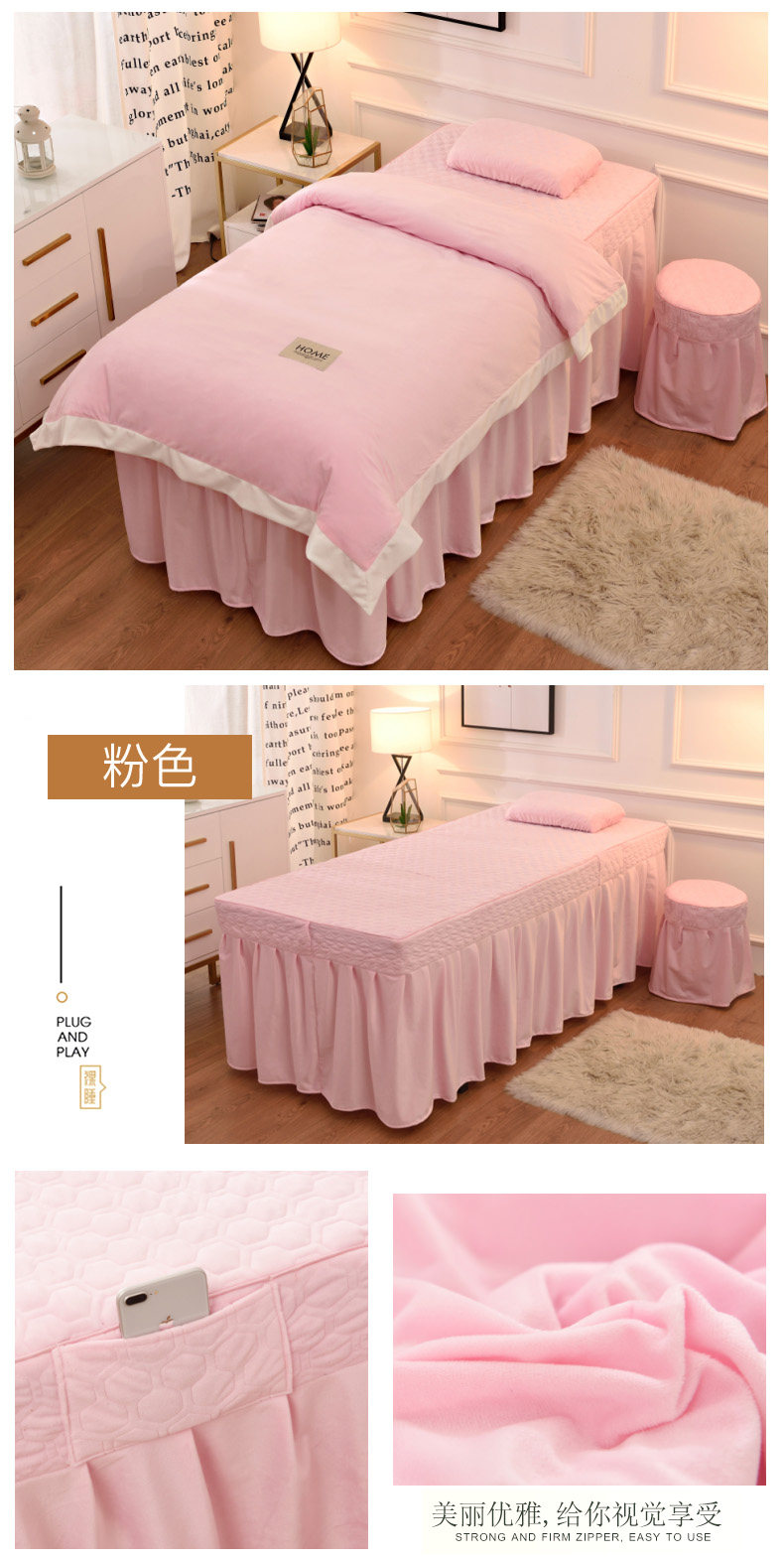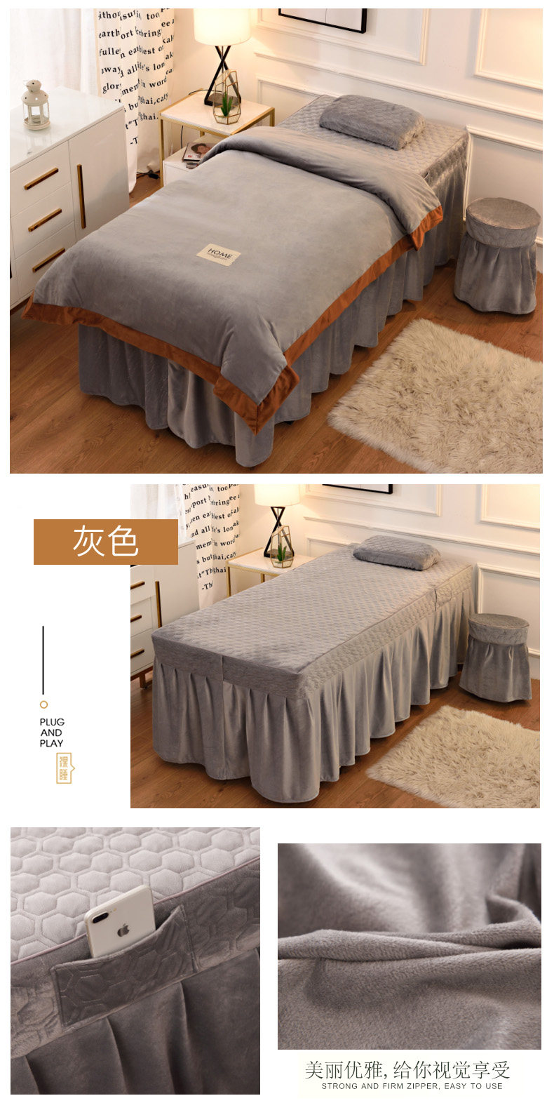 Косметическое покрывало, демисезонный комплект, косметический массажер, 4 предмета, увеличенная толщина, для салонов красоты, европейский стиль, простой и элегантный дизайн, делается под заказ, с печатью вашего логотипа