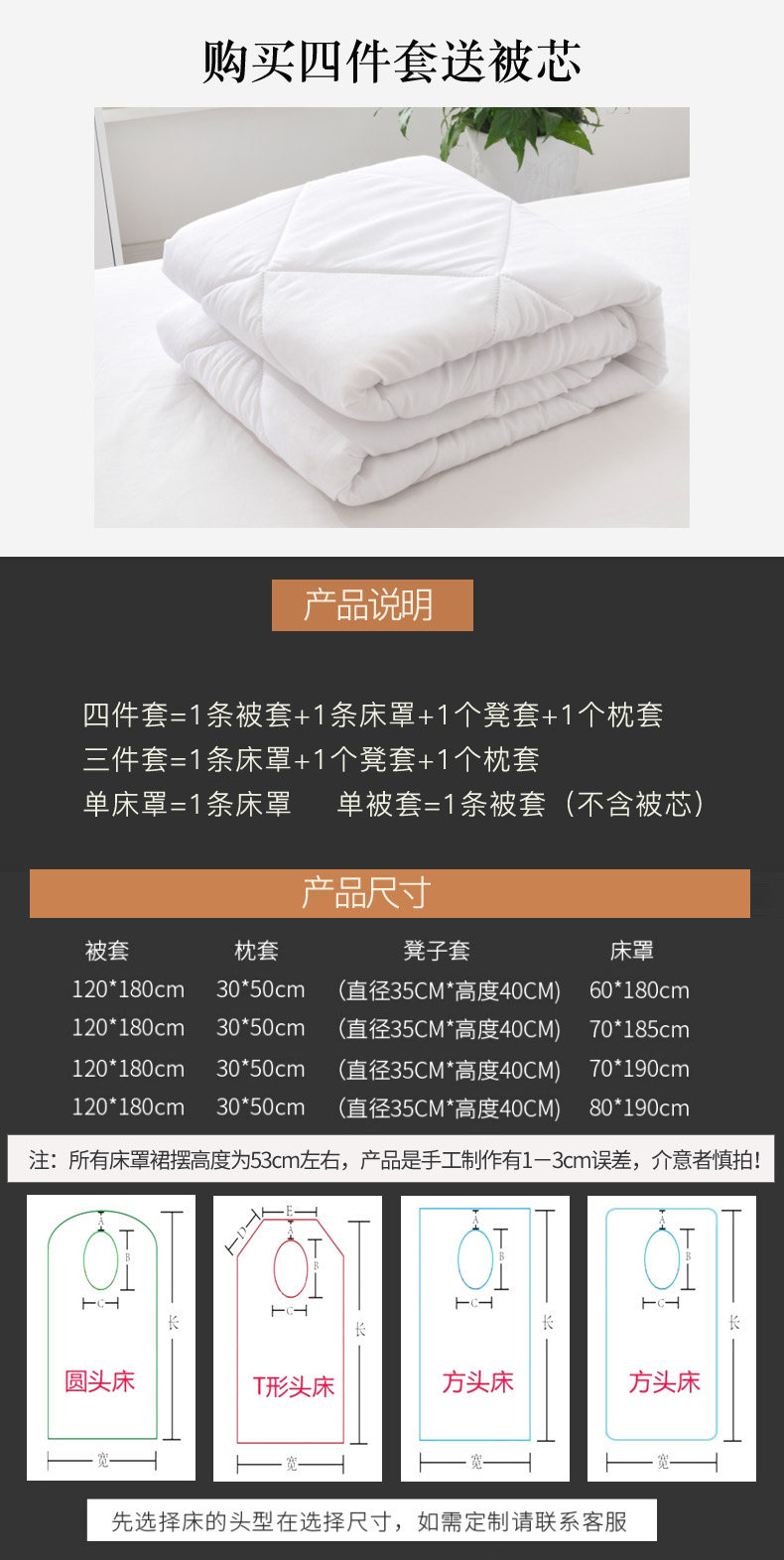 | Размеры простыней/кроватей: | Fangtou 60*180, Fangtou 70*185, Fangtou 70*190, Fangtou 80*190, Круглая голова 60*180, Круглая голова 70*185, Круглая голова 70*190, Трапециевидная головка 60*180, Трапециевидная головка 70*185, Трапециевидная головка 70*190, Для пользовательского размера, пожалуйста, свяжитесь с обслуживанием клиентов в течение 3-5 дней, чтобы отправить (не возврат средств или изменения), Одиночное стеганое одеяло (за исключением ядра) 120*180, Стеганое одеяло (включая стеганое одеяло) 120*180 |