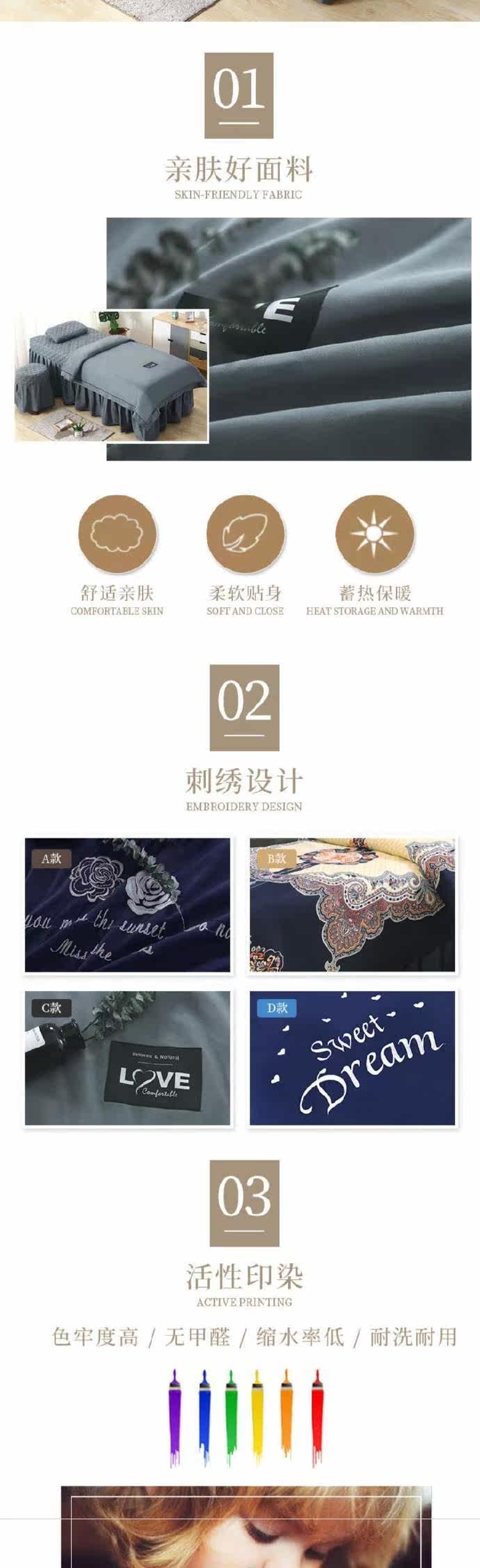 Сиреневый комплект, косметический массажер, простыня, современный трендовый пододеяльник, 2019, для салонов красоты, 4 предмета