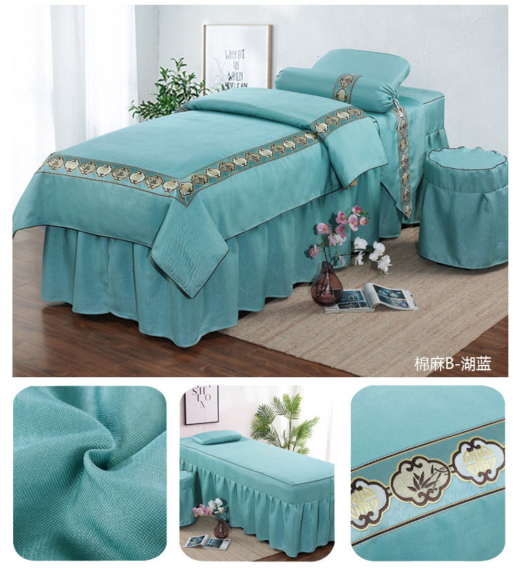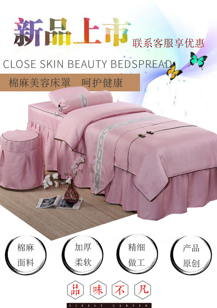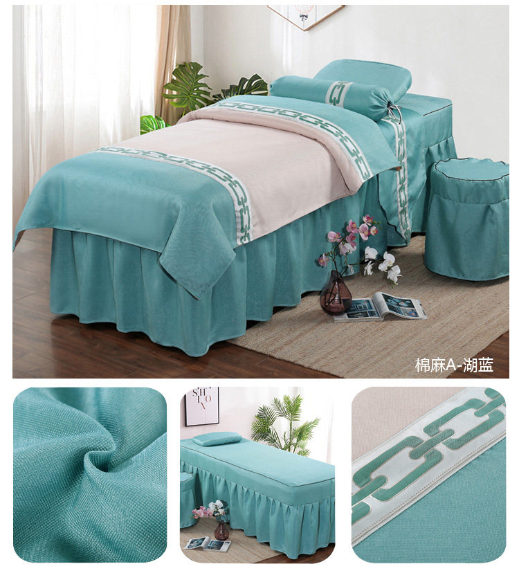 Косметическое покрывало, комплект для ухода за кожей, косметический массажер для мытья головы, из хлопка и льна, 4 предмета, делается под заказ