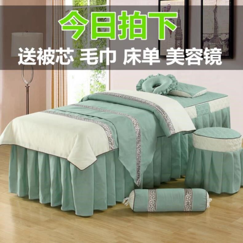Покрывало, зеленый комплект, синий пододеяльник, 4 предмета, увеличенная толщина, постельные принадлежности, 60×180см, 70×190см