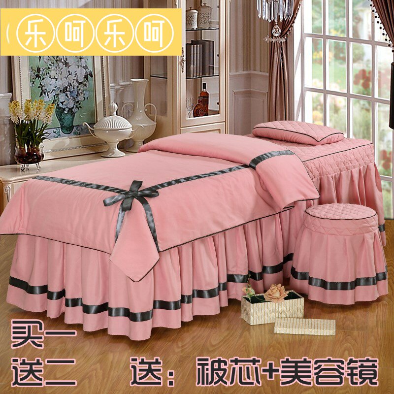 Массажер, простыня, розовое покрывало, косметический летний хлопковый элитный модный комплект, для салонов красоты, 4 предмета, простой и элегантный дизайн, в корейском стиле
