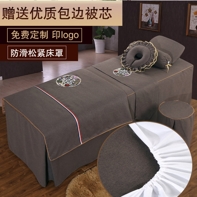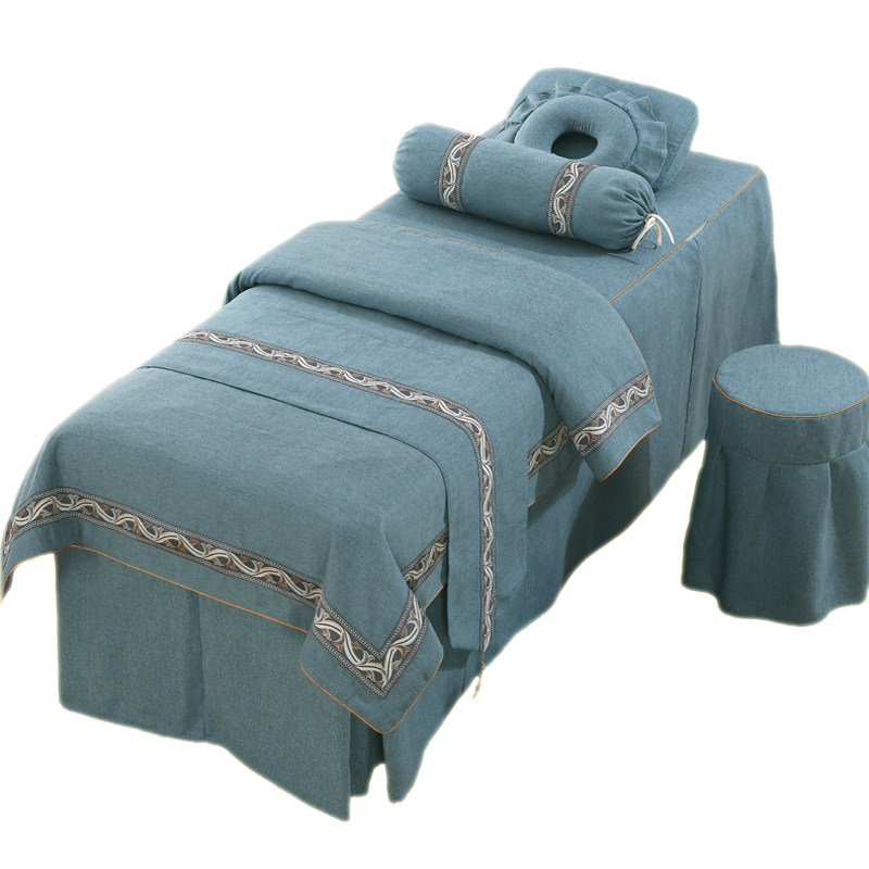Косметическое покрывало, хлопковый комплект, косметический японский массажер, 4 предмета, из хлопка и льна, для салонов красоты