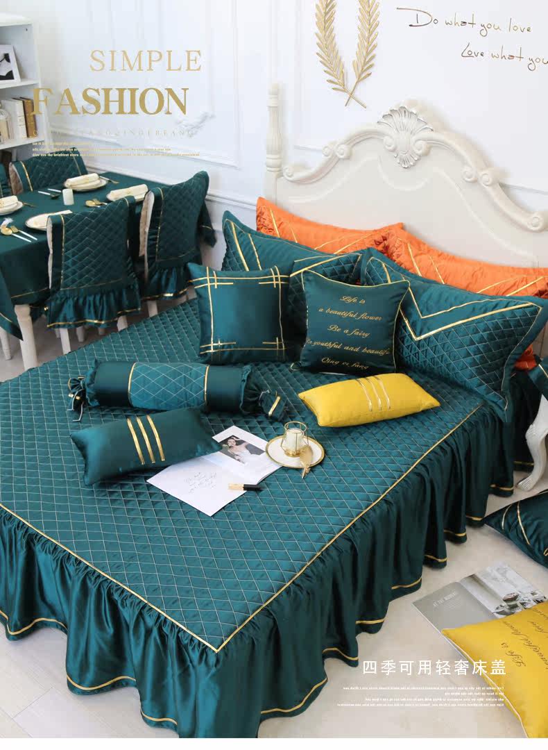 Всесезонное нескользящее стеганое покрывало, комплект из трех предметов, легкий роскошный скандинавский однотонный покрывало, юбка, кружевное покрывало