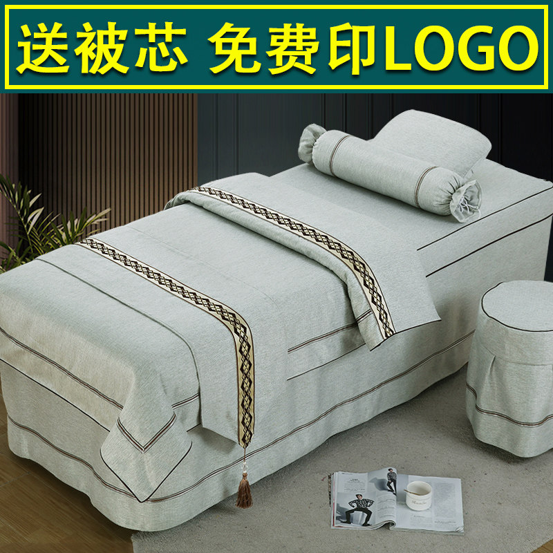 Высококлассное косметическое покрывало, хлопковый комплект, косметический массажер, 4 предмета, из хлопка и льна, скандинавский стиль, для салонов красоты